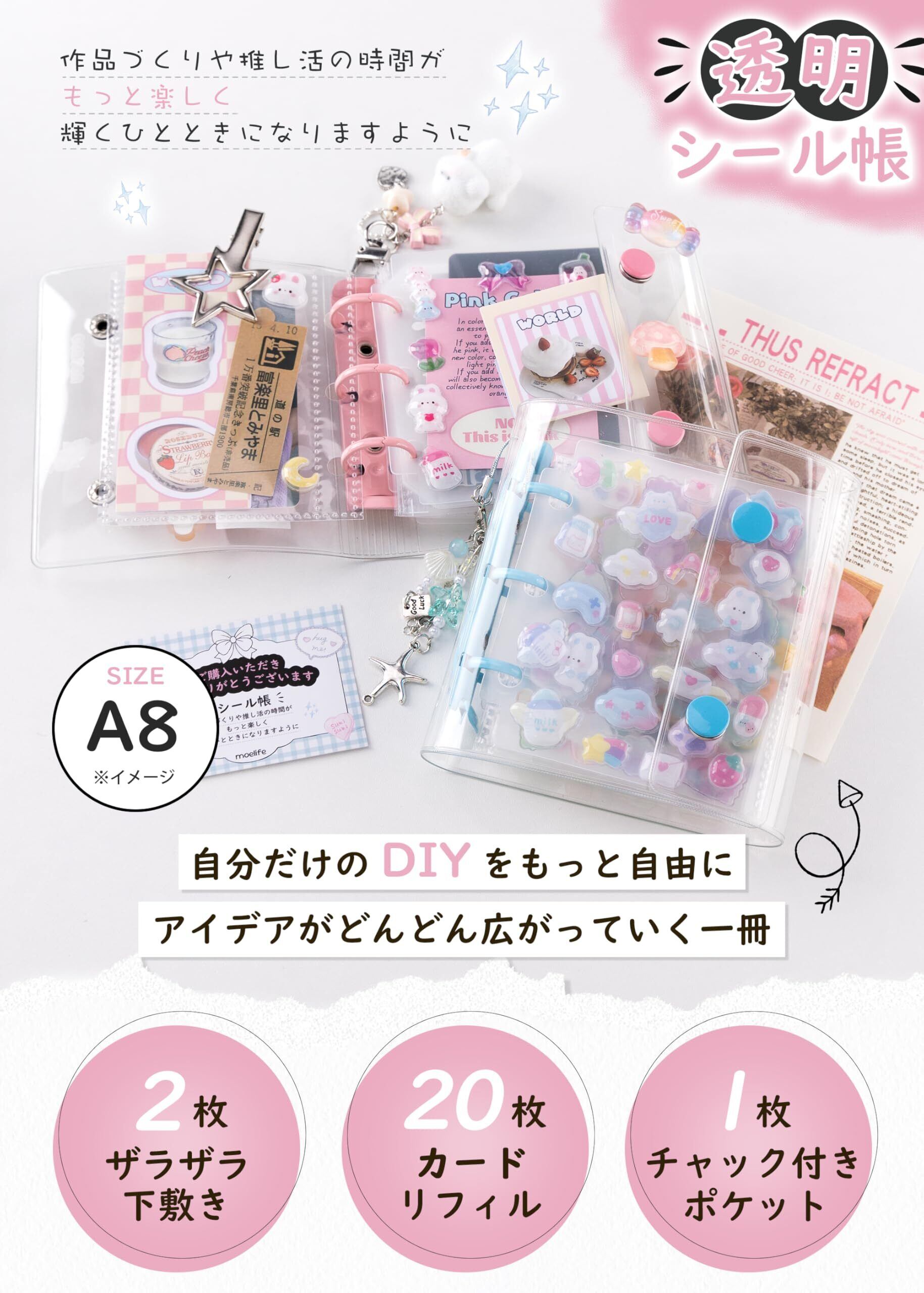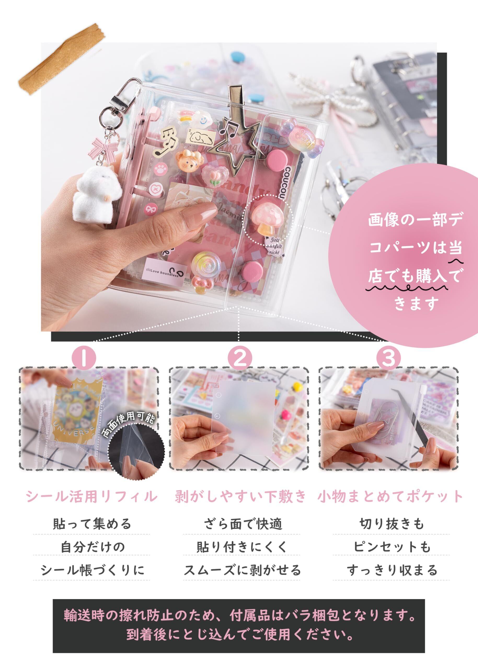 【シールブームにぴったりなマルチユース手帳】お気に入りのシールを集めて・貼って・眺めて楽しめるシール帳です。シールのコレクションや交換はもちろん、手作りデコや推し活ノートとしても活躍します。透明リフィルに貼れば、立体シールもきれいに保管でき、見せる収納にもぴったりです。今話題のシール整理&見せる収納を、この1冊でお楽しみください