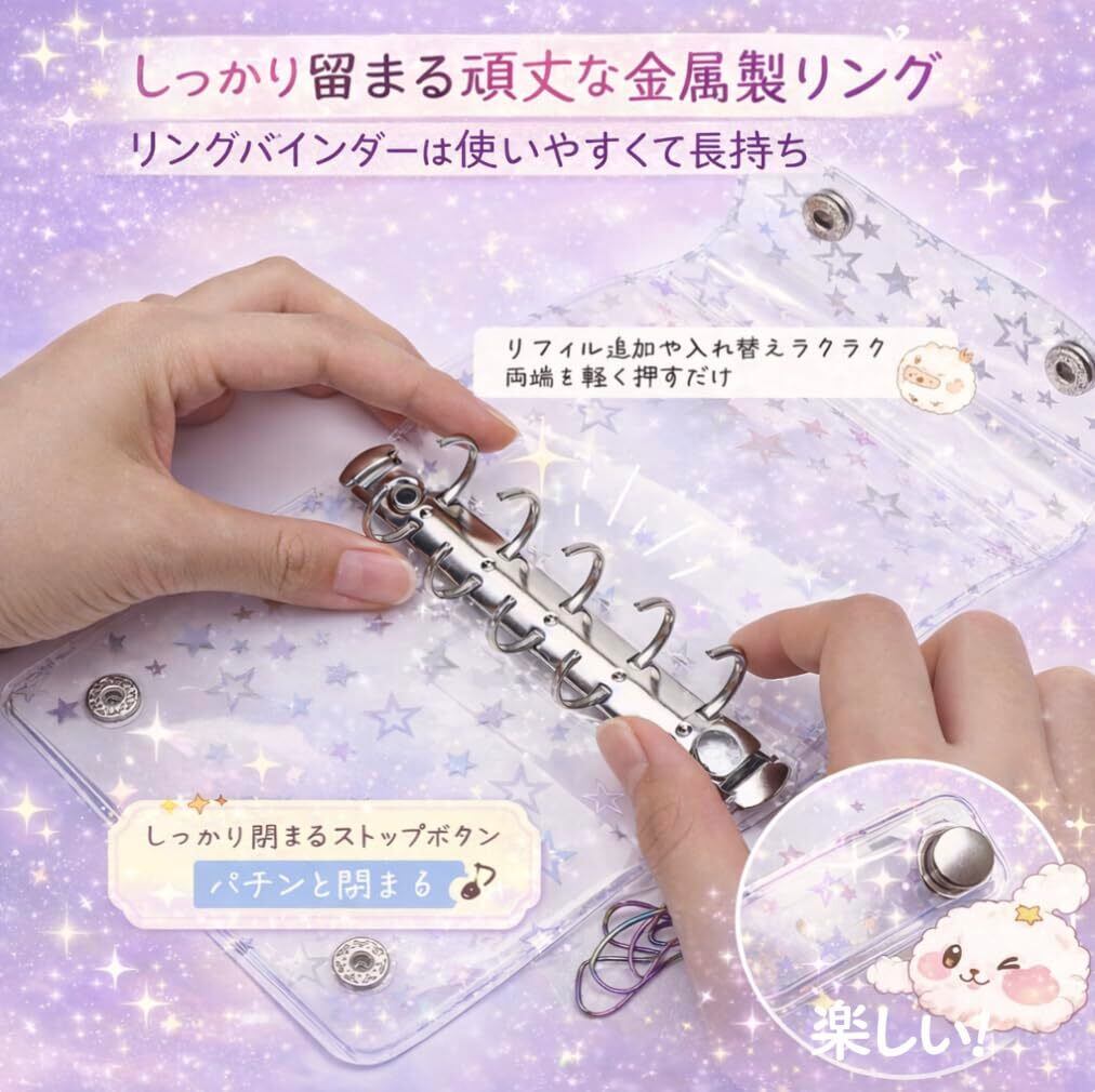 星柄 透明 シール帳 A7 リングバインダー リフィル10枚/20枚選択可 トレカ収納 推し活 (リフィル20枚付き)