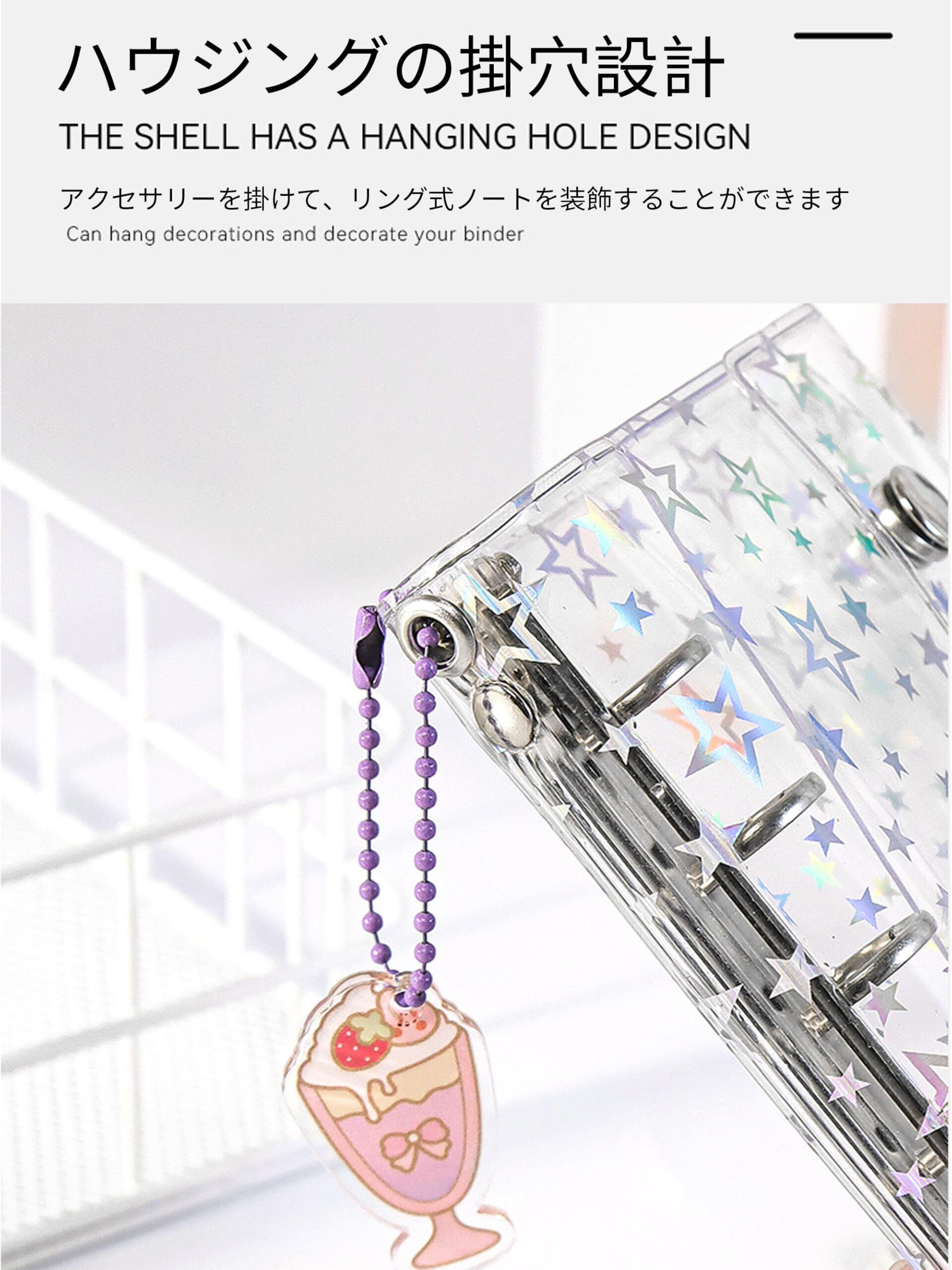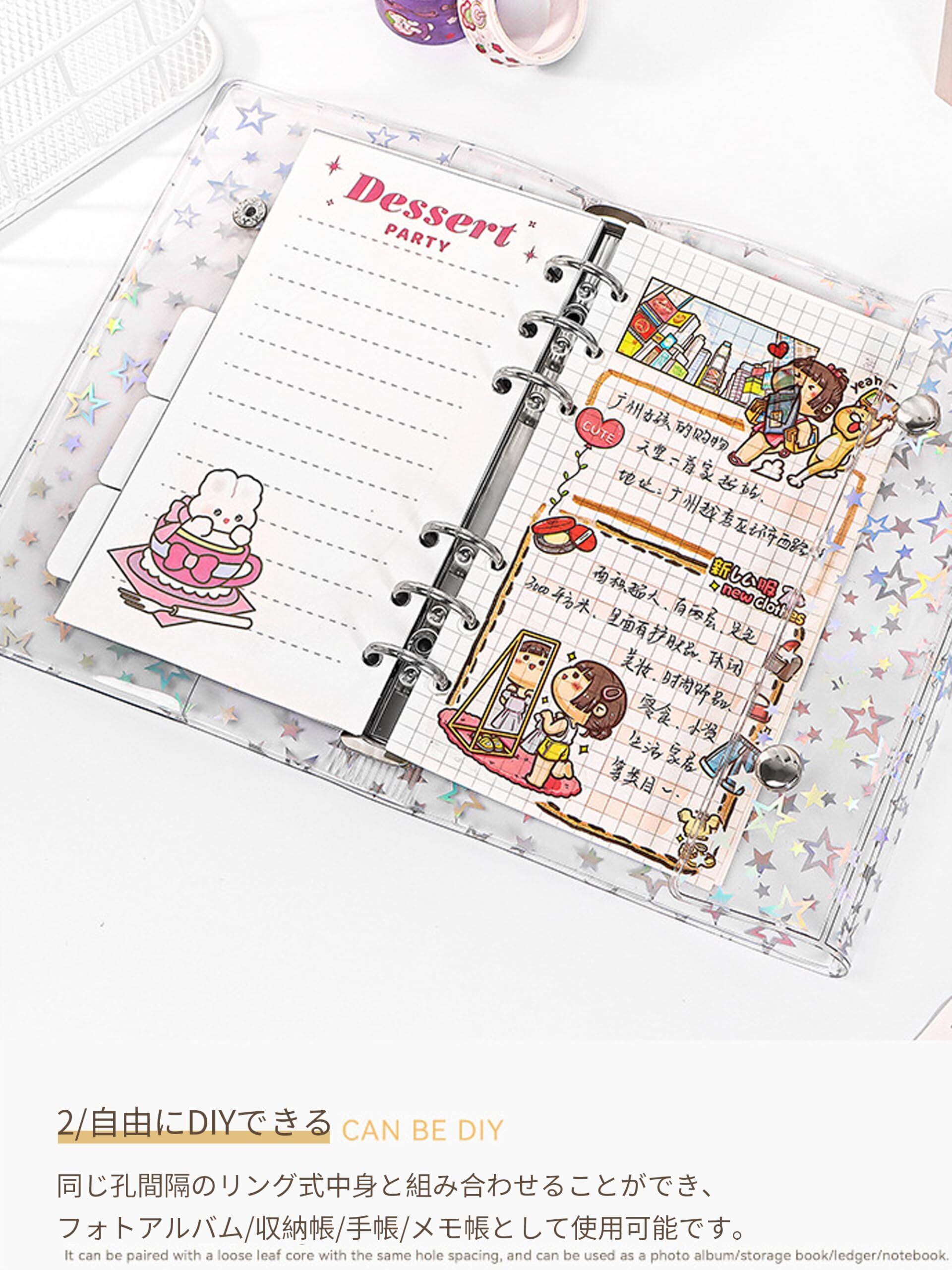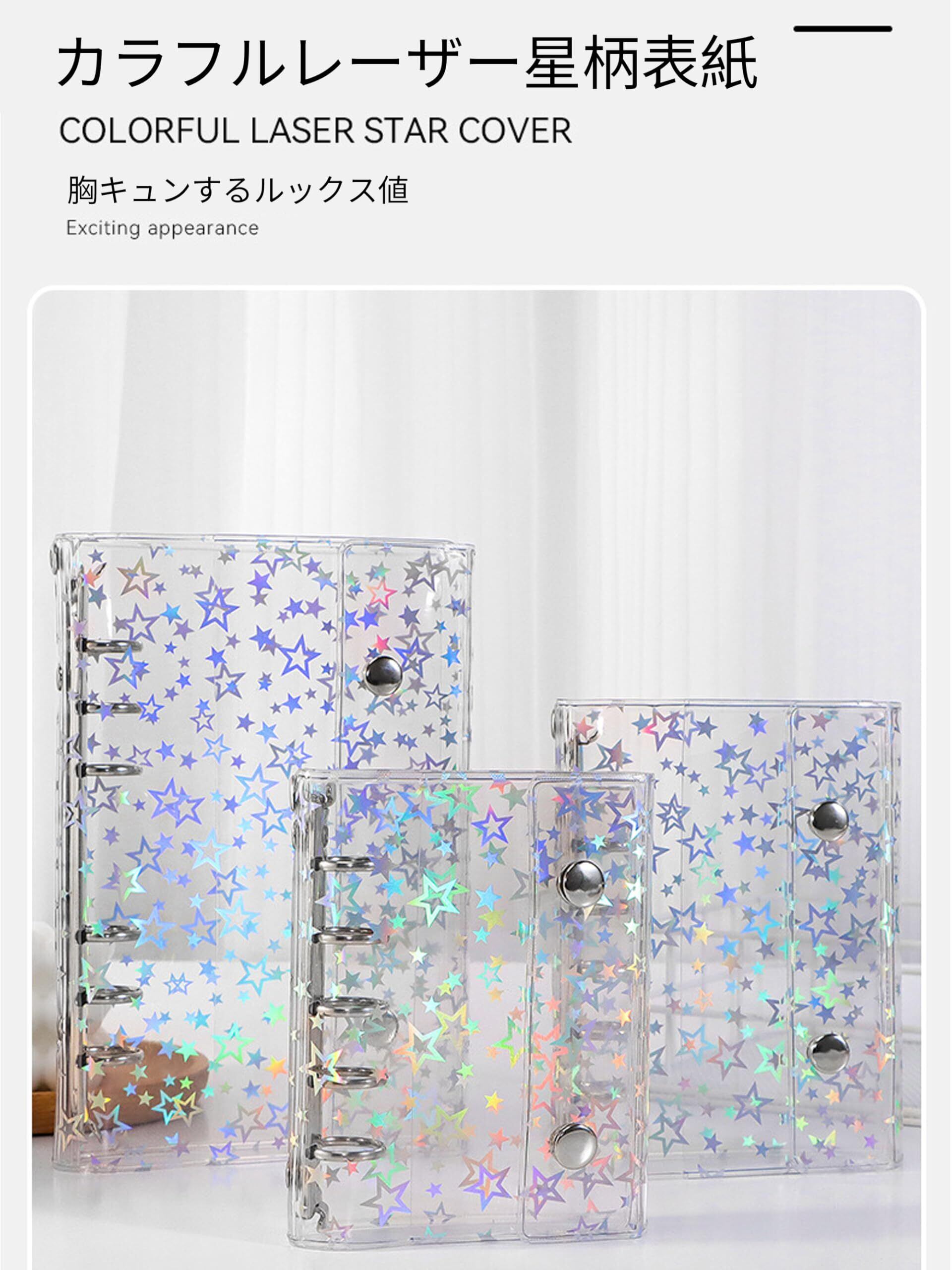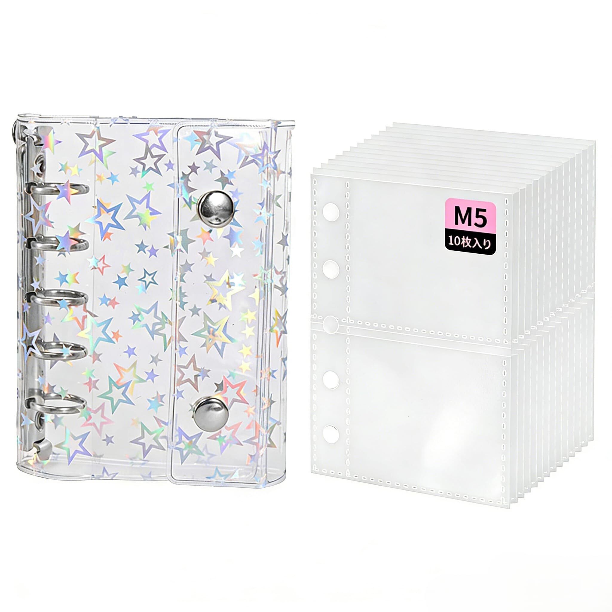 2 格両面仕様カードページ 10 枚 M5 シール帳 透明 レーザースター PVC M5 双ロック・ポケット付・吊孔設計 自由 DIY・雑貨収納