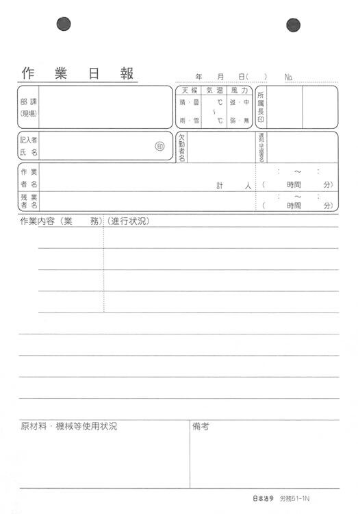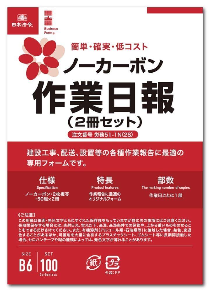 日本法令 作業日報(B6 2枚複写 2冊セット) 労務51-1N(2S)