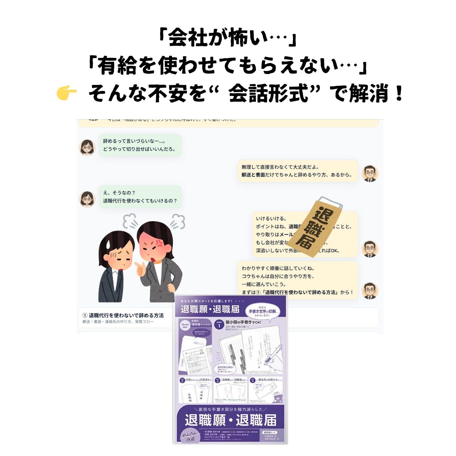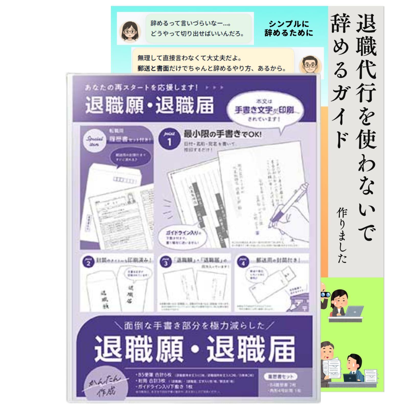 A4カラー退職ガイド付き:退職の流れ・郵送方法の注意点を会話形式でやさしく解説。