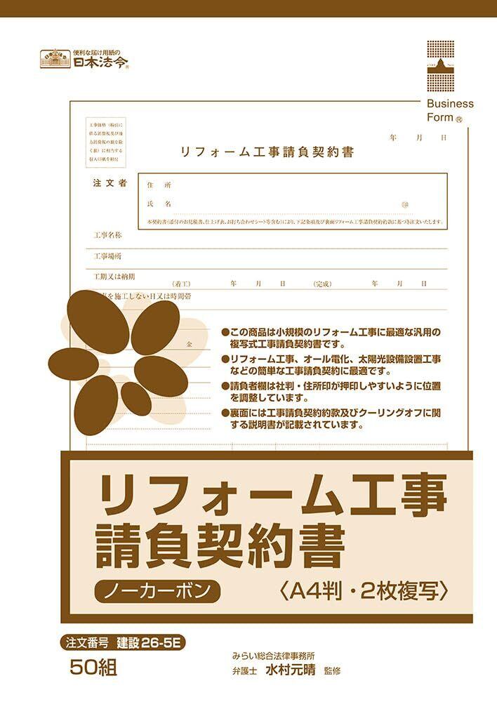 【人気商品】日本法令 リフォーム工事請負契約書(ノーカーボン2枚複写)建設26-5E