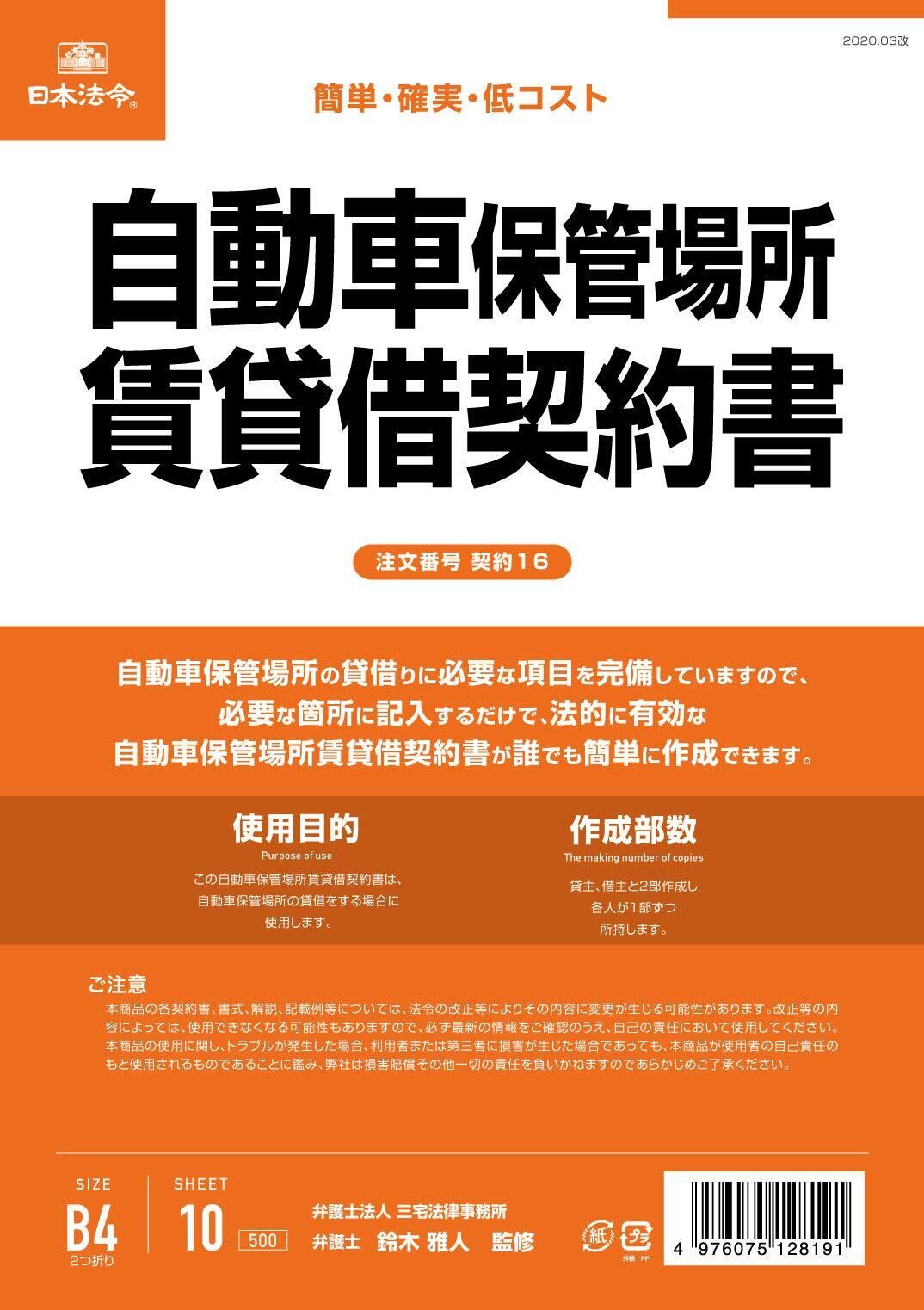日本法令 自動車保管場所賃貸借契約書(タテ書)(B4・10枚) 契約16
