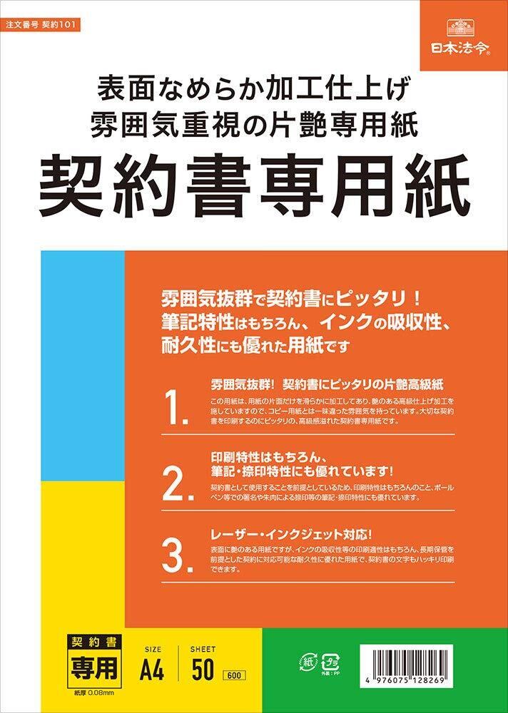 【数量限定】日本法令 契約書専用紙(A4判・50枚) 契約101