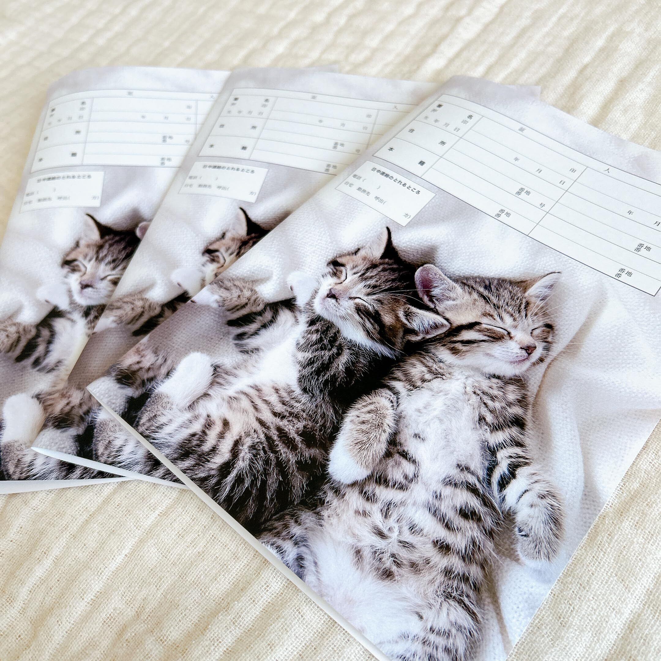 役所提出用 婚姻届 萌える反則級の可愛さ!キュンとする おやすみ2匹の子猫ちゃん 猫 ネコ ねこ 子猫 キャット 猫好きのための かわいい オシャレ柄 バレンタイン ハート<A3サイズ︎3枚セット>&you.