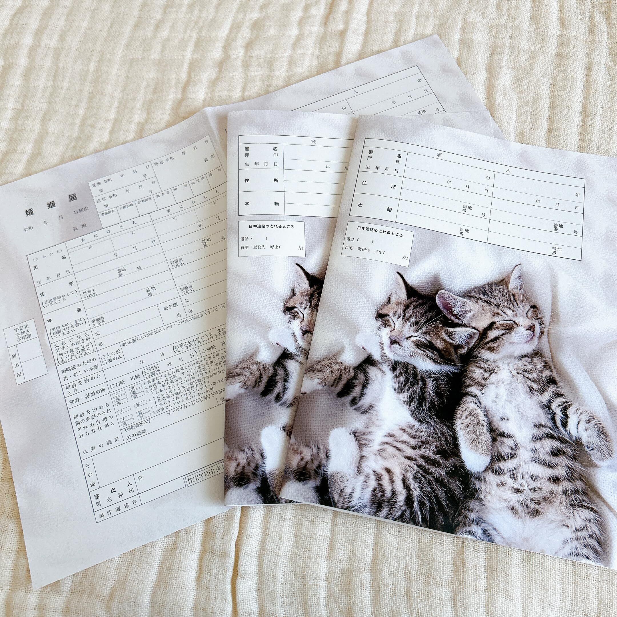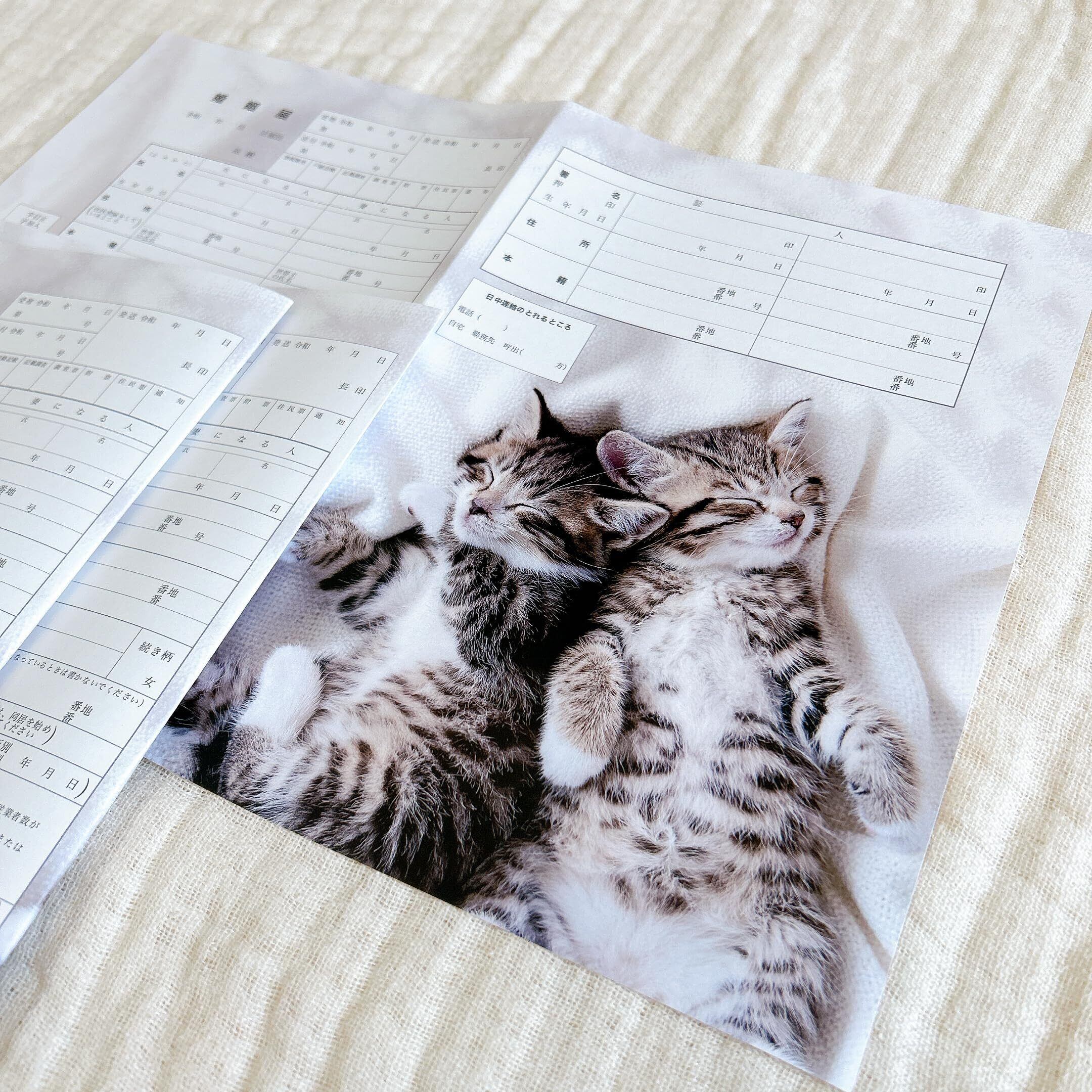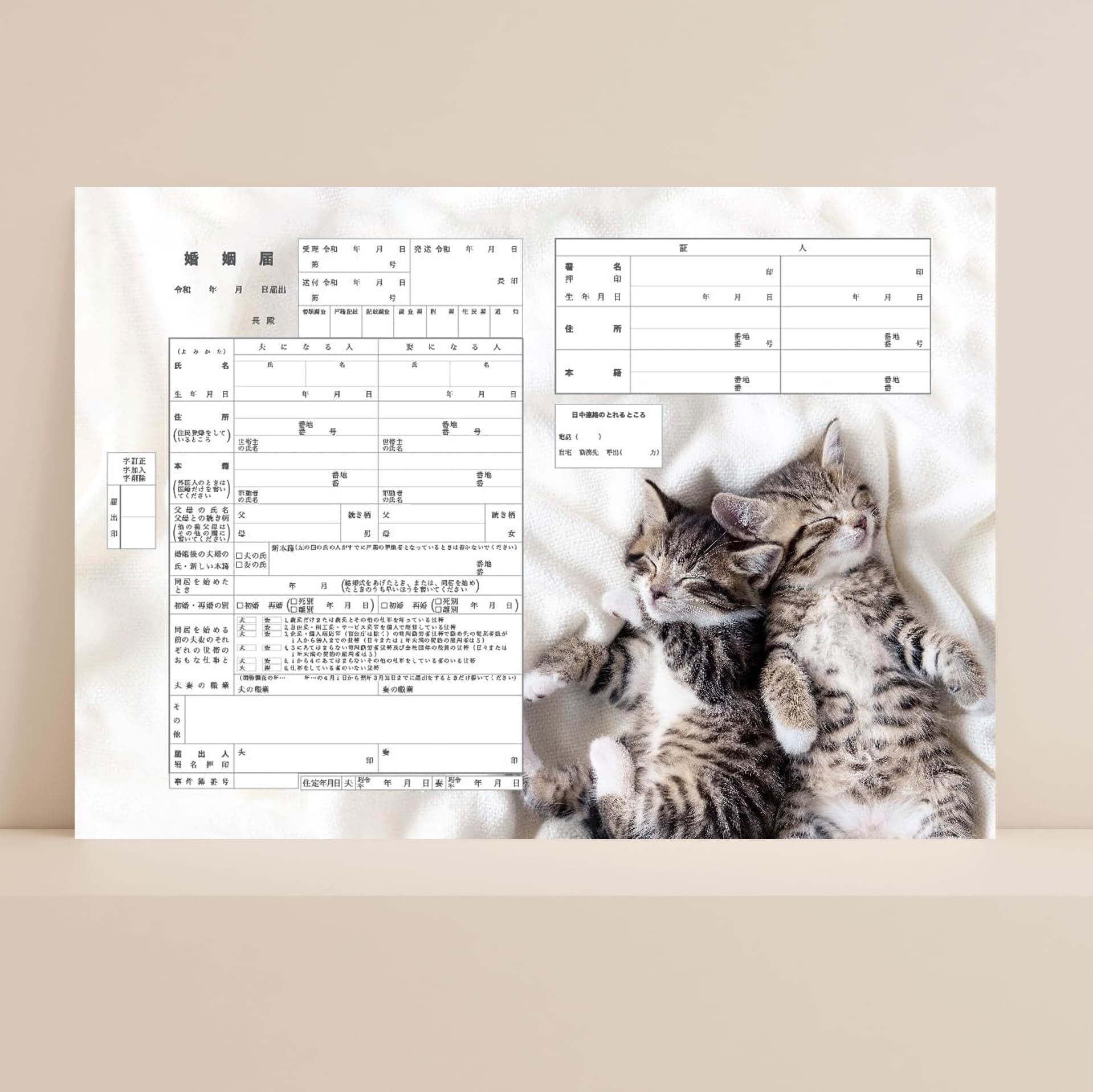 【新春セール】役所提出用 婚姻届 萌える反則級の可愛さ!キュンとする おやすみ2匹の子猫ちゃん 猫 ネコ ねこ 子猫 キャット 猫好きのための かわいい オシャレ柄 バレンタイン ハート<A3サイズ︎3枚セット>&you.