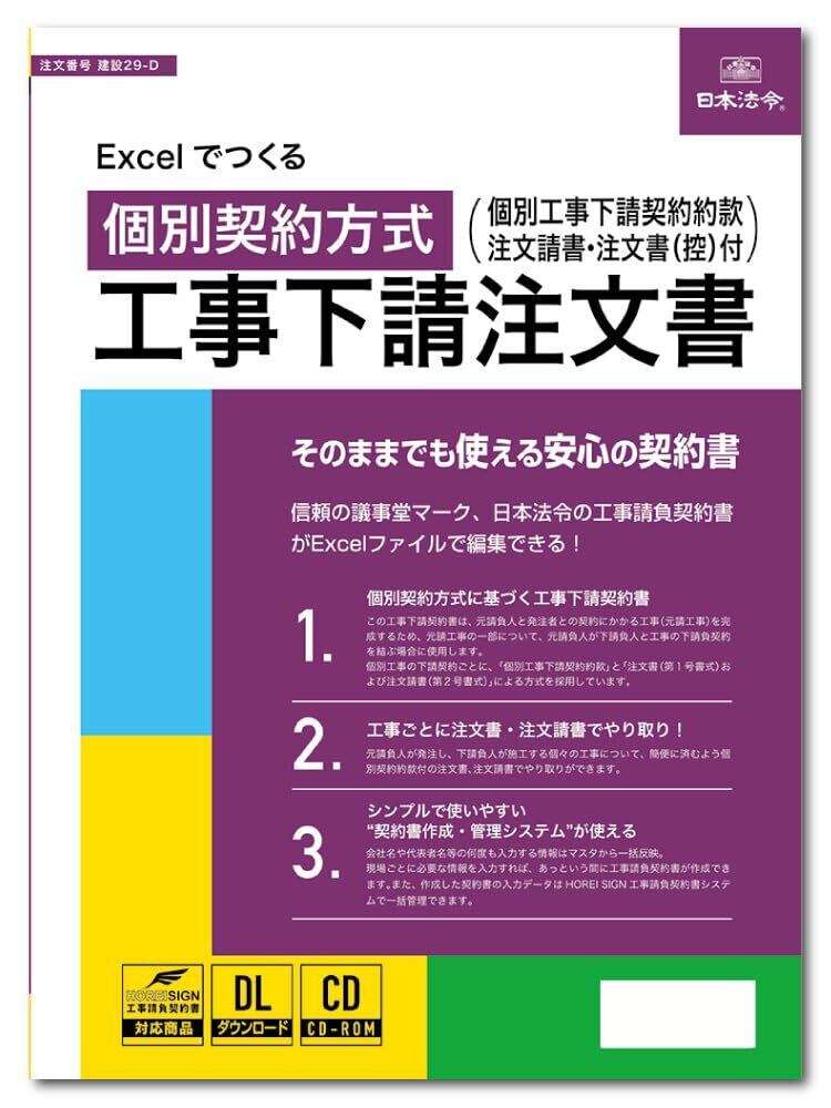 【新着商品】日本法令 Excelでつくる 個別契約方式 工事下請注文書 建設29-D