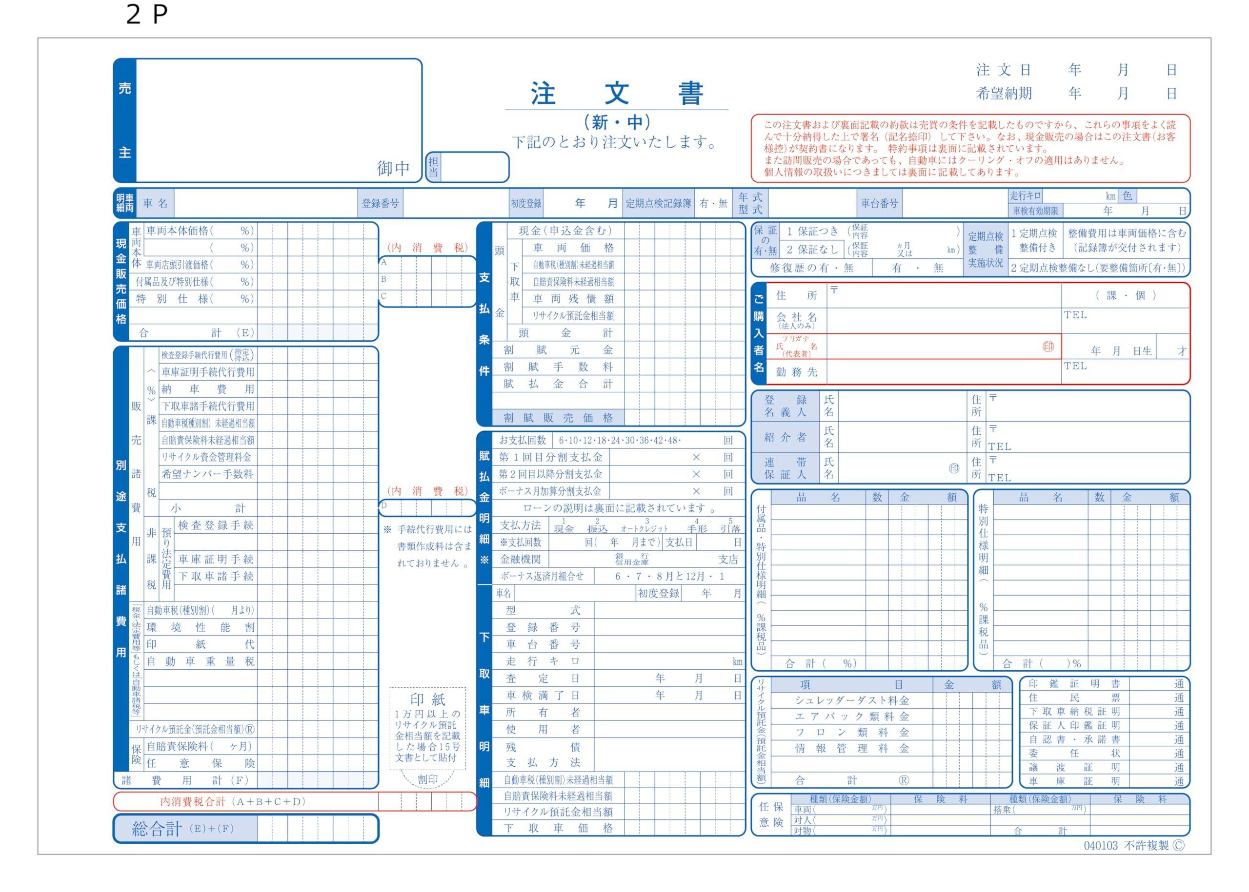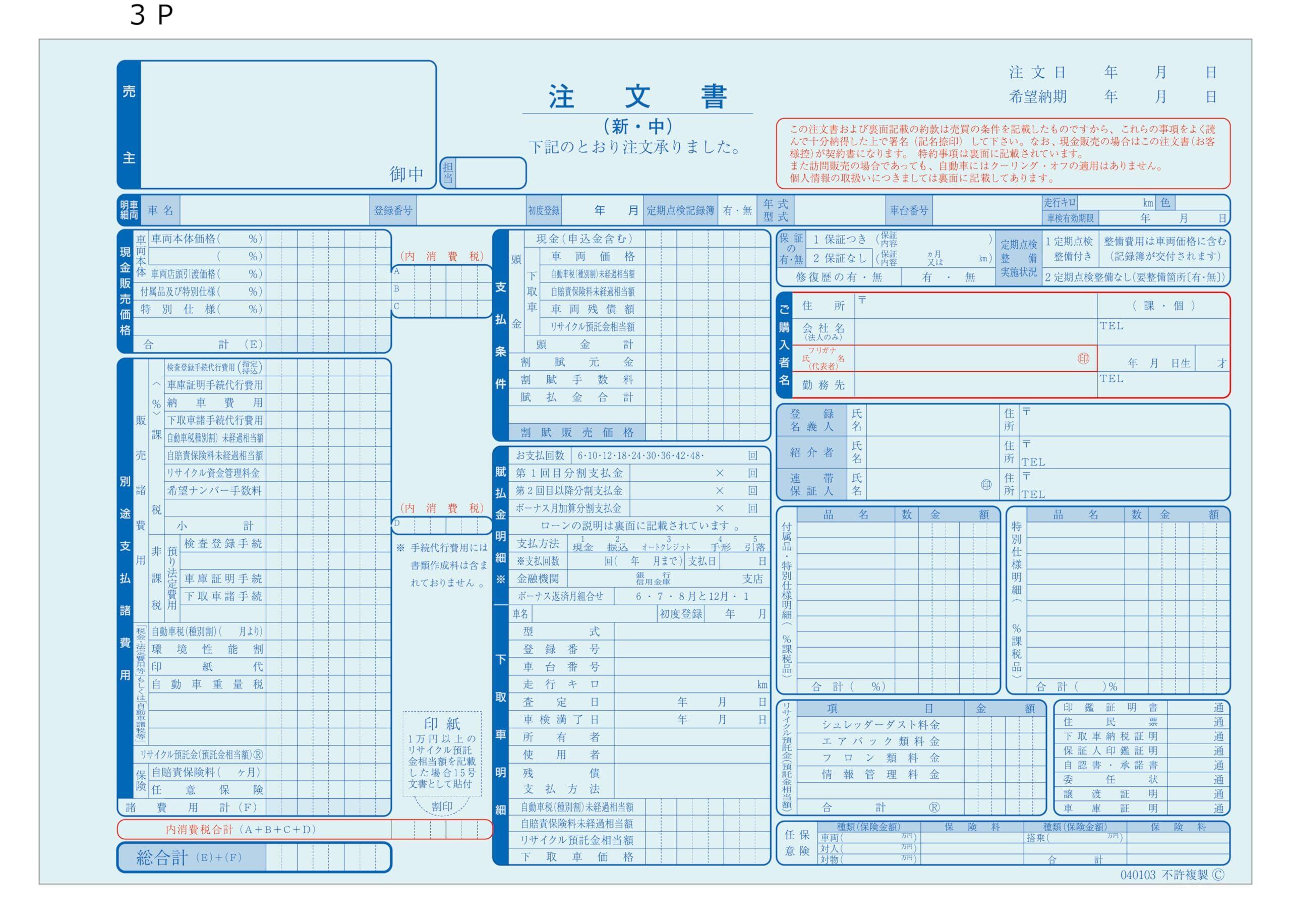 自動車注文書 3枚複写 インデックス付 1枚 D-1 c-d-1-c21901