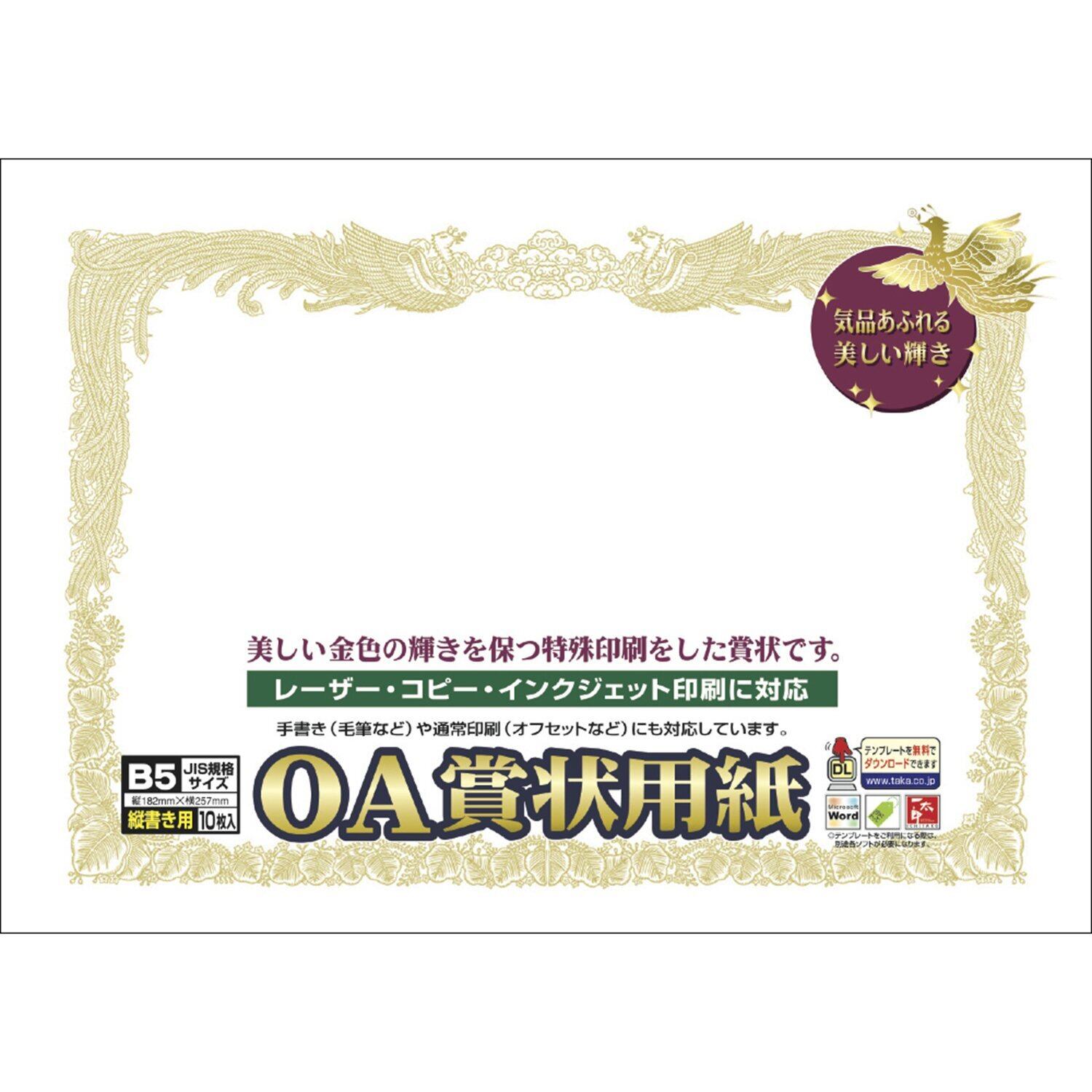 ササガワ 賞状用紙 タカ印 OA対応 縦書き用 白 B5 10枚 10-1050