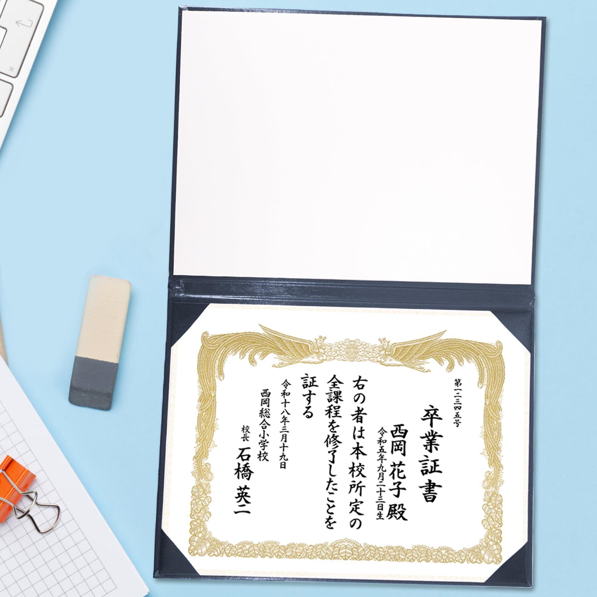 GraduationMall 感謝状 卒業証書・賞状ファイル 二つ折り 紙 A4判 紺