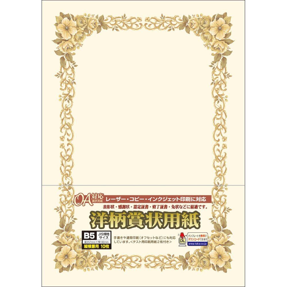 ササガワ 賞状用紙 タカ印 OA対応 縦横兼用 クリーム B5 10枚 10-252