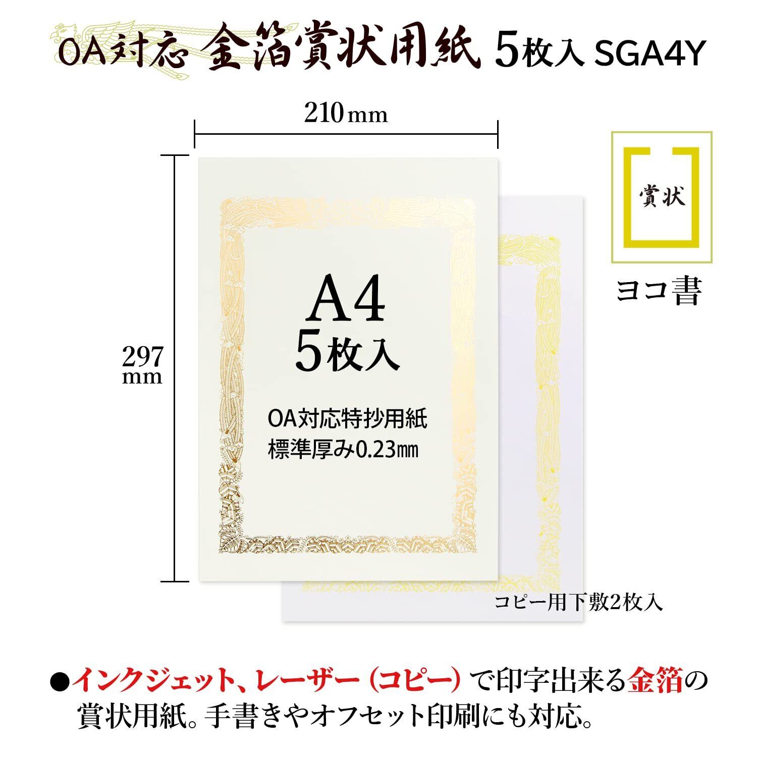 オキナ 賞状用紙 A4 横書き 5枚 金箔押し プリンタ対応 SGA4Y