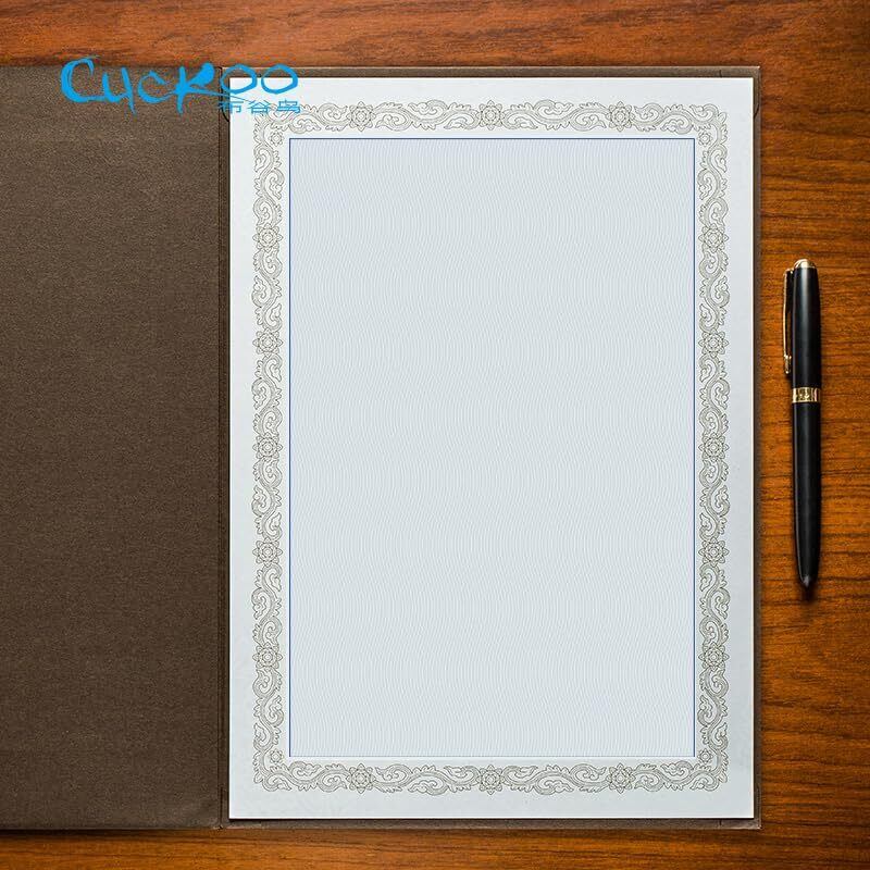 【特徴】証明書用紙は、厚手の140gsm無塗装木材フリーペーパーで作られており、破れ、しわ、色の浸透を防ぐために頑丈で耐久性があります。用紙ははっきりと印刷され、色あせしにくく、長期間保存することができます。用紙は横向きまたは縦向きで使用できます。