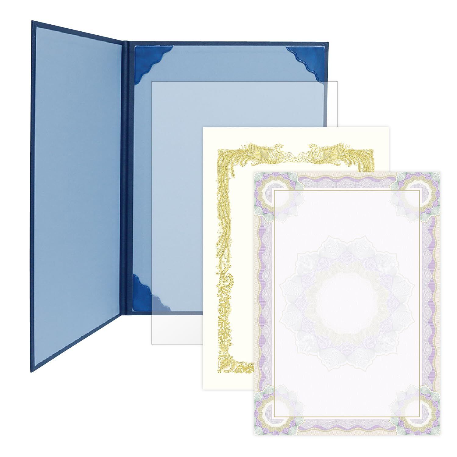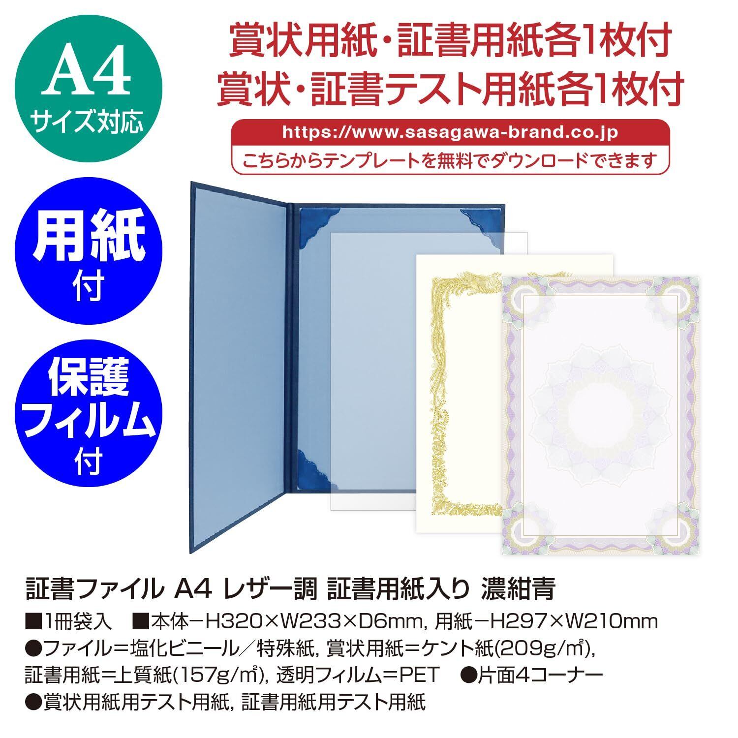 ササガワ 証書ファイル タカ印 A4サイズ対応 保護フィルム付 賞状用紙 証書用紙入り 濃紺青 10-6101