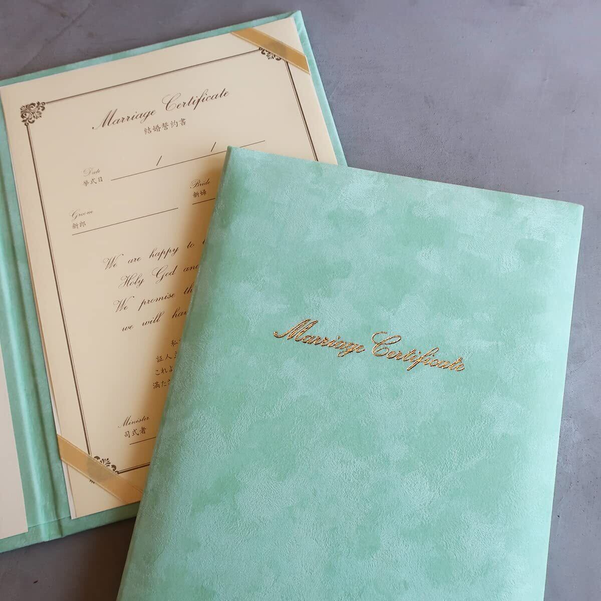【在庫処分】京都マルタヤ 結婚証明書 人前式 B5 写真フレーム付 立会人シート付 結婚誓約書 (パステルグリーン)