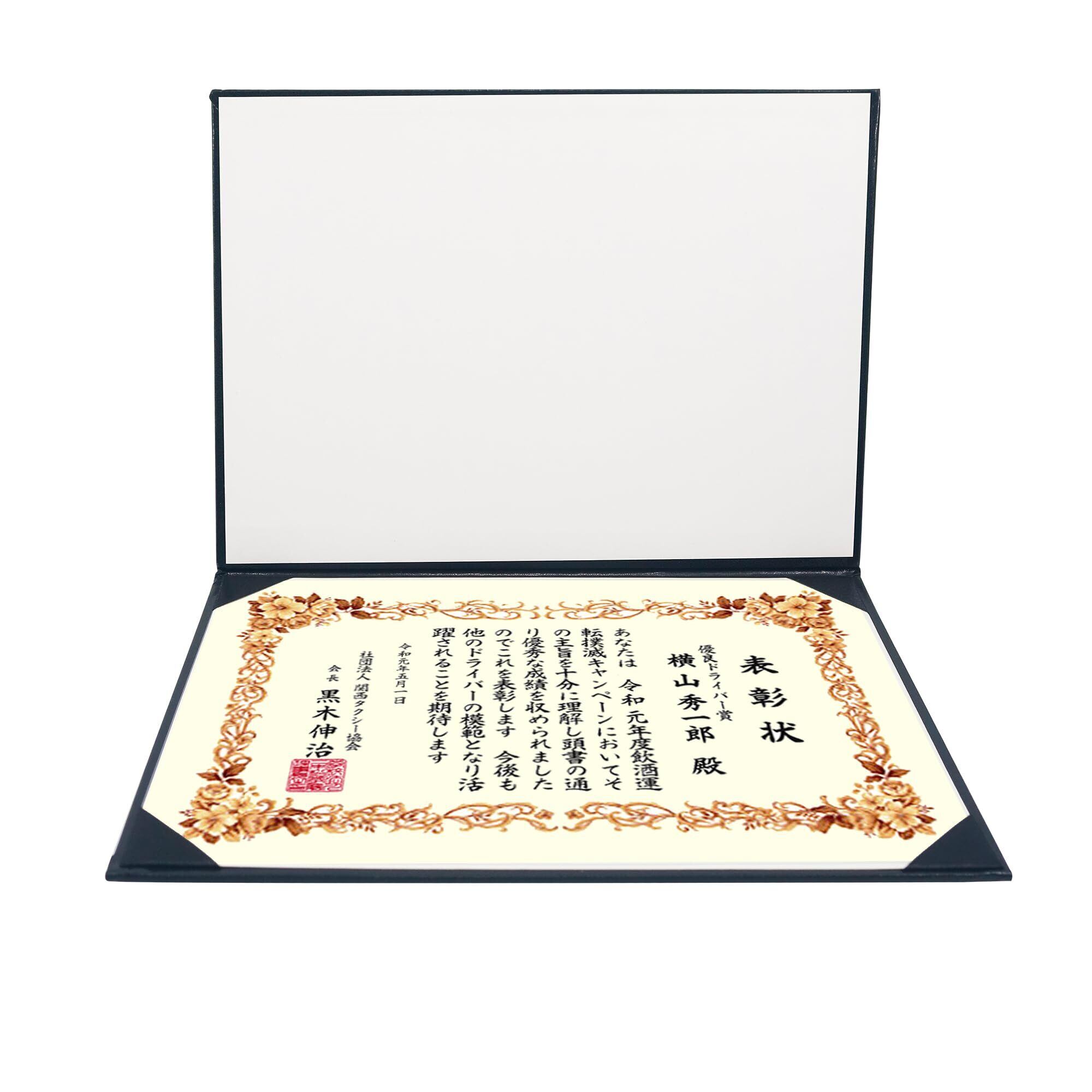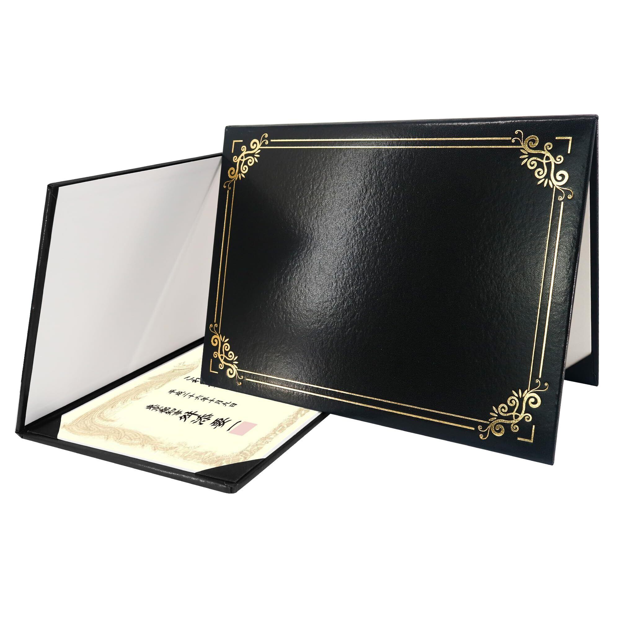 GraduationMall 感謝状 卒業証書・賞状ファイル レースホットスタンピング 二つ折り レザー調 A4 判 黒