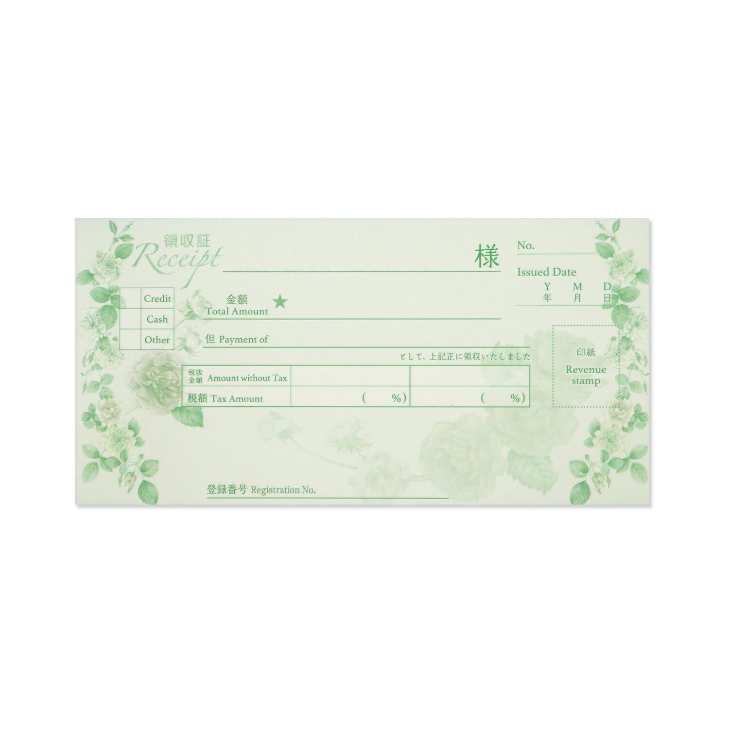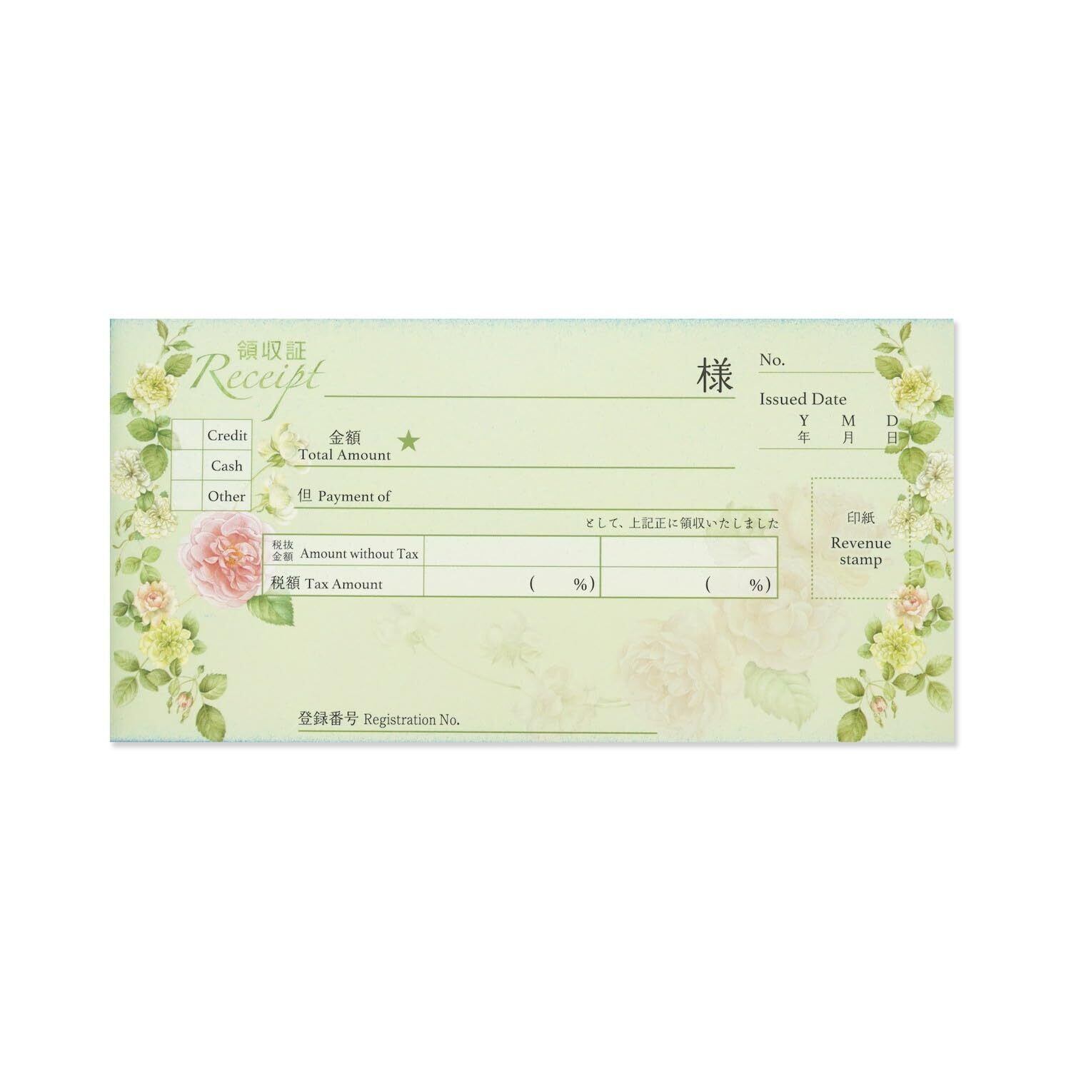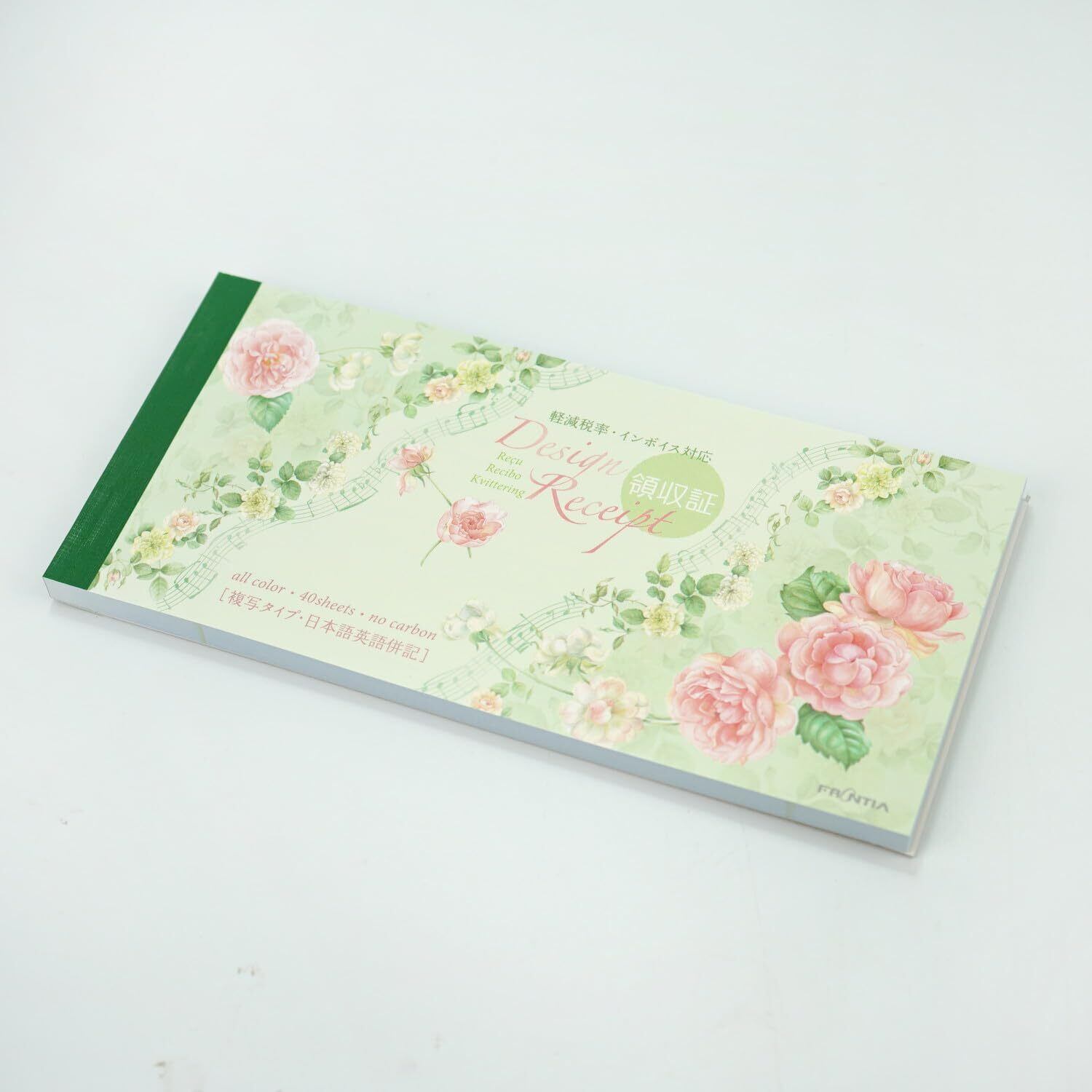 華やかに見えるおしゃれな領収書です。ノーカーボンで、2枚複写タイプ。ミシン目できれいに切り離せます。40シート。小切手サイズ。