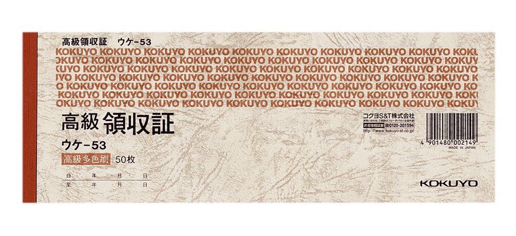 商品名 : コクヨ 高級領収書 小切手判・ヨコ型 ヨコ書き 高級多色刷り ウケ-53