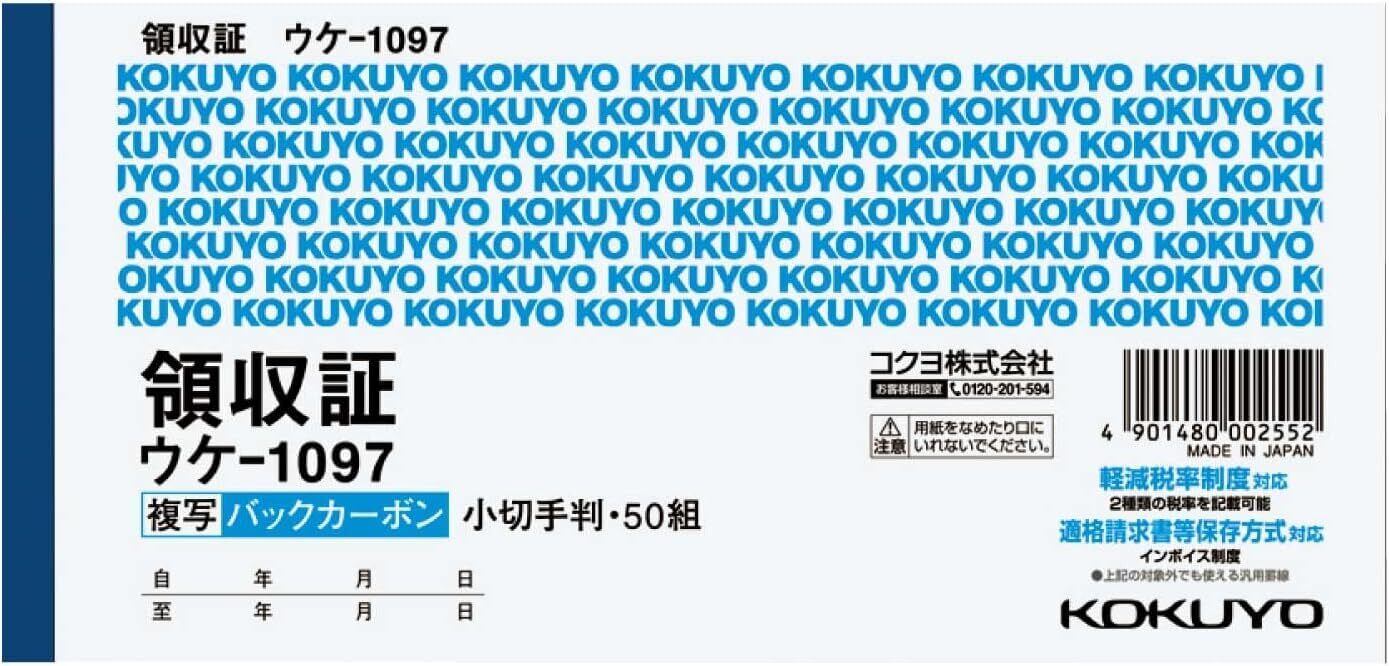 【新春セール】コクヨ(KOKUYO) 複写簿 領収書 バックカーボン 横書き 小切手判 ヨコ型 二色刷り 50組 10冊セット ウケ-1097X10