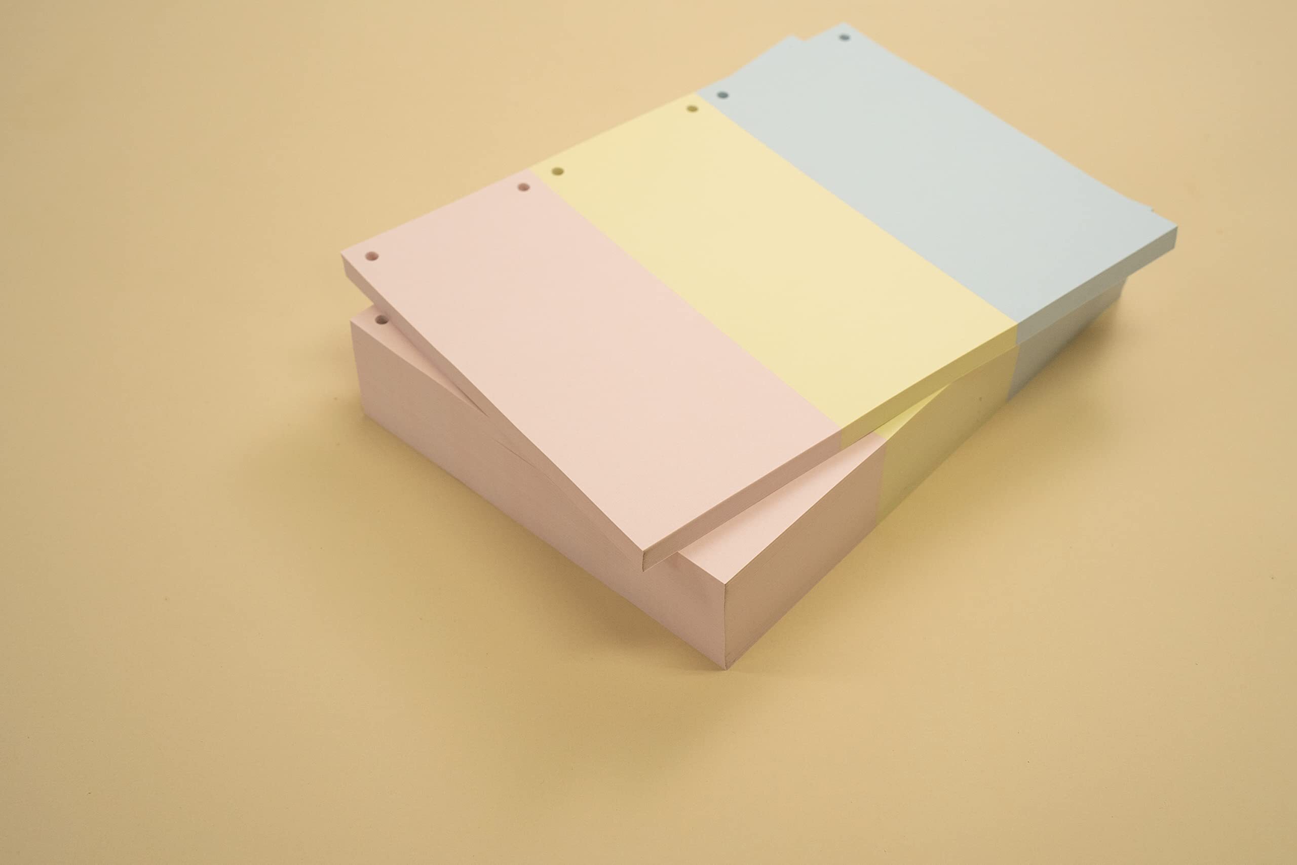 【在庫処分】【用紙Labo】 A4 『青・黄色・ピンク』 3分割 6穴 カラー 55Kg (500枚) ミシン目入り用紙 マイクロミシン 用紙ラボ