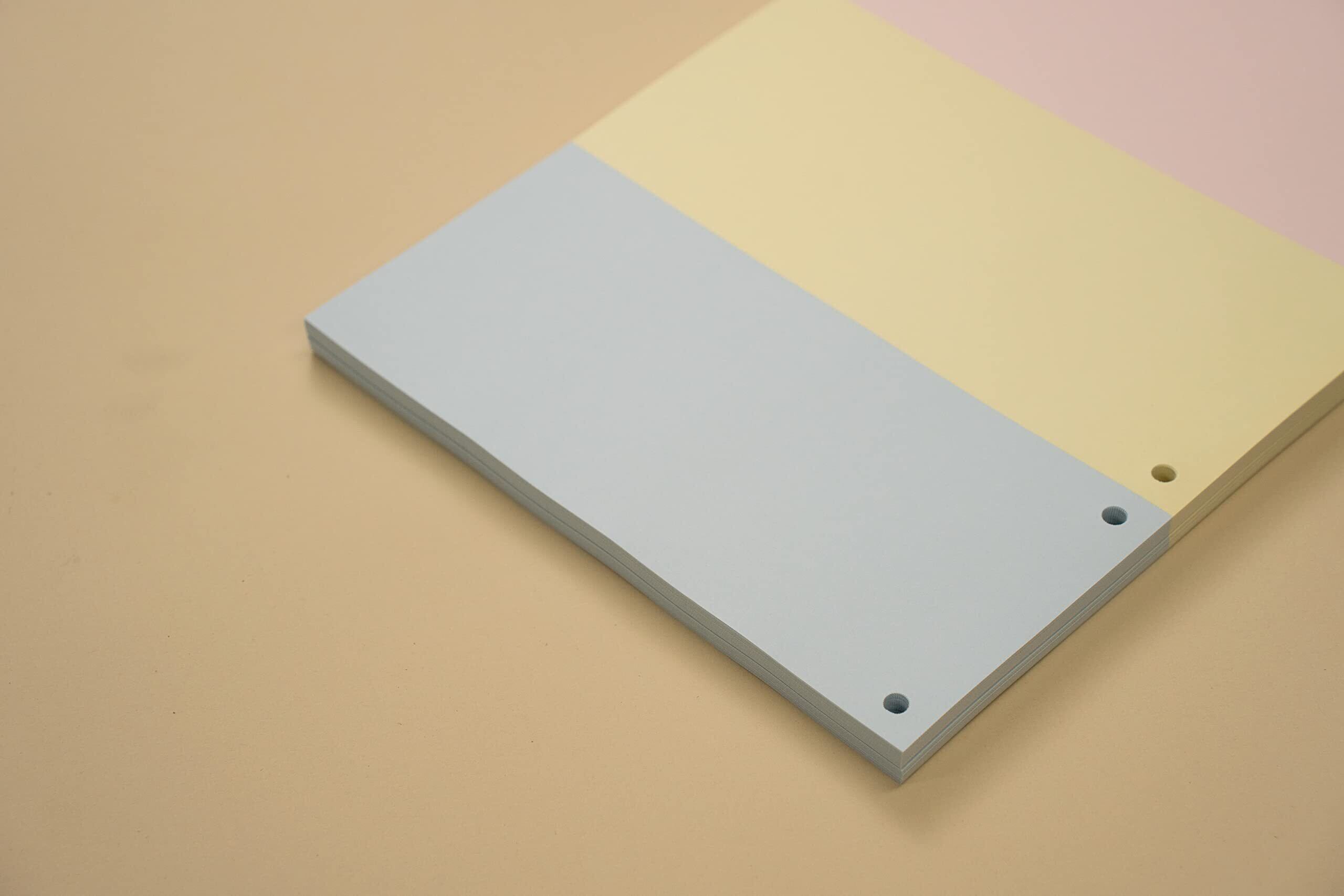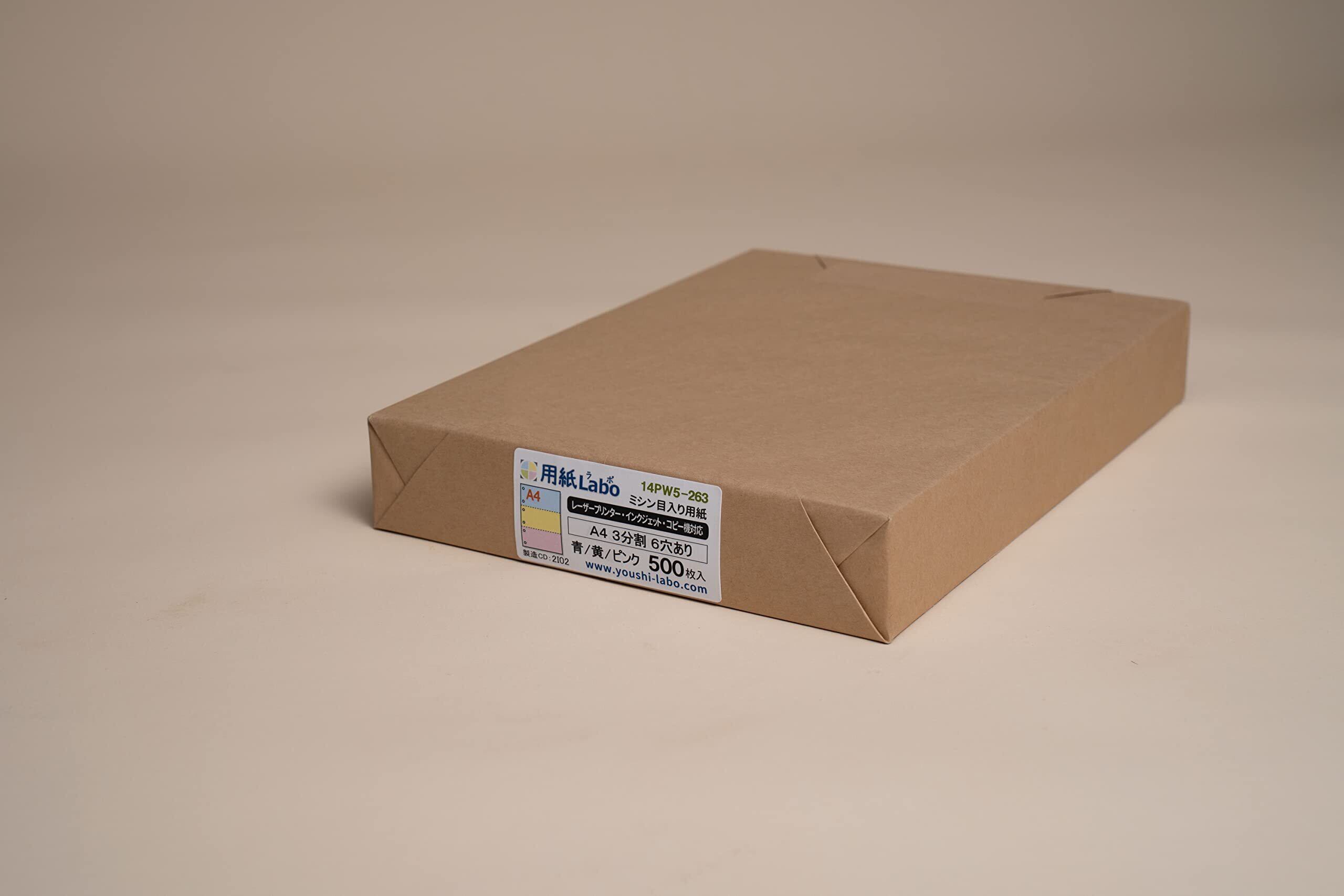【用紙Labo】 A4 『青・黄色・ピンク』 3分割 6穴 カラー 55Kg (500枚) ミシン目入り用紙 マイクロミシン 用紙ラボ