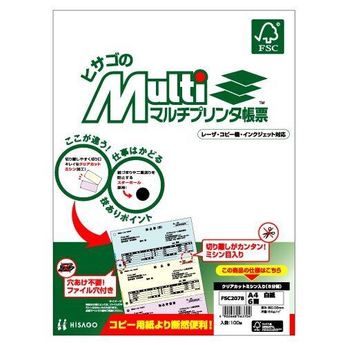 ヒサゴ マルチプリンタ帳票FSC A4白紙6面 (100枚) FSC2078