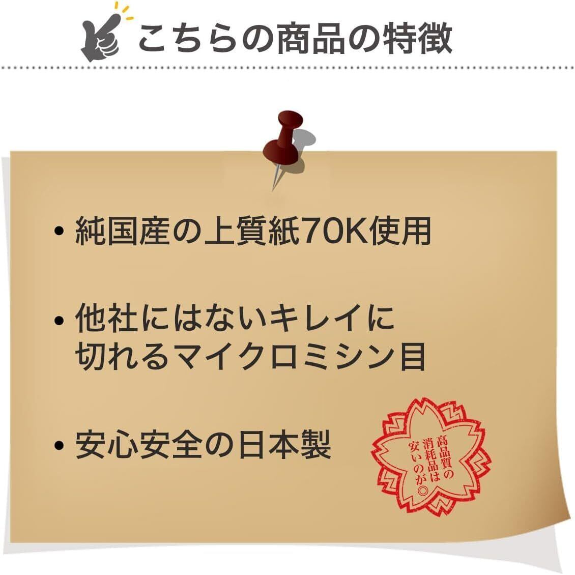 ミシン目も他社製品には無いマイクロミシンを入れてますので、切り口が綺麗で、ストレスフリーで切れます。しかもインクの色が鮮やかで綺麗なのも特徴です。