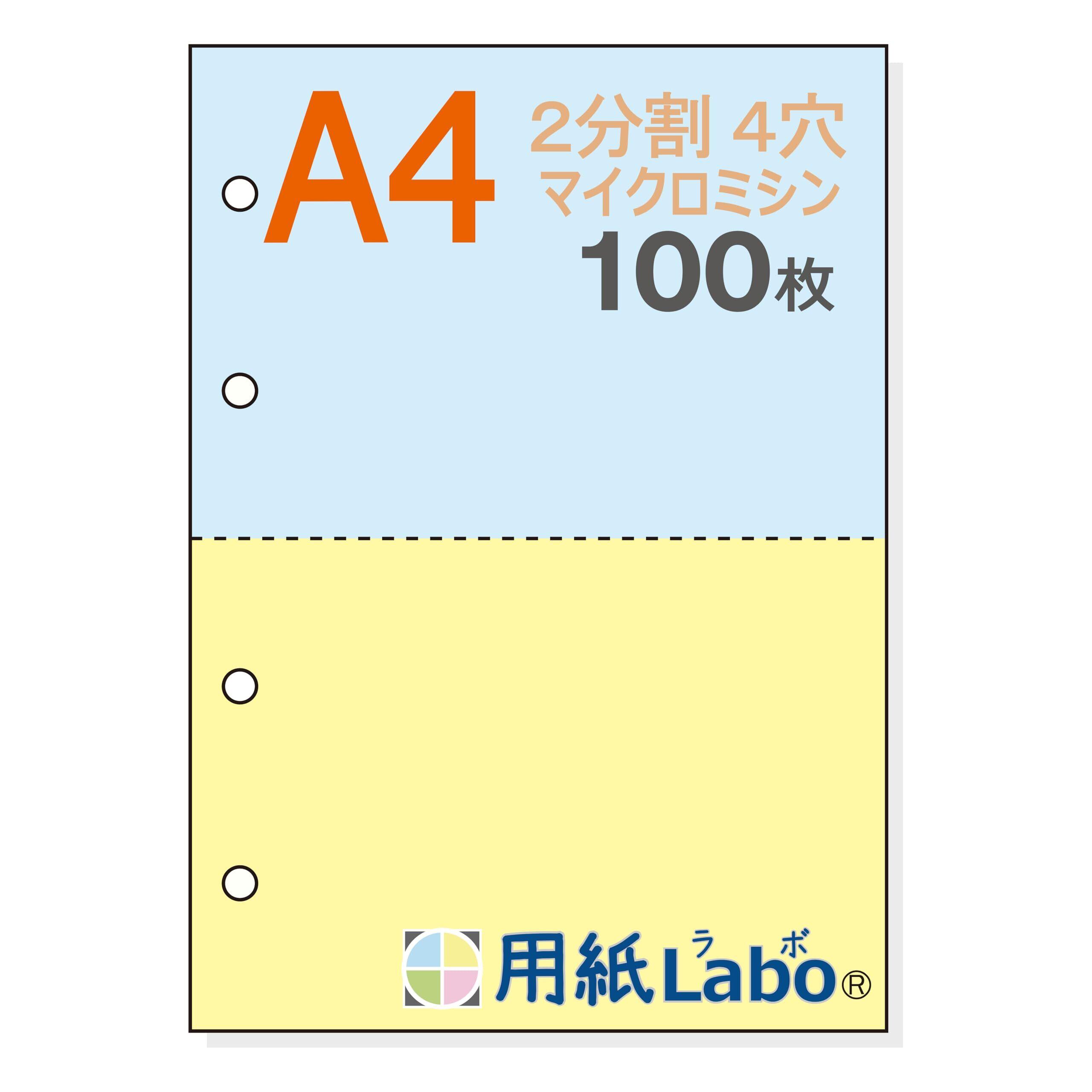 【用紙Labo】 A4 青/黄色 2分割 4穴 55Kg ミシン目入り用紙 マイクロミシン 用紙ラボ