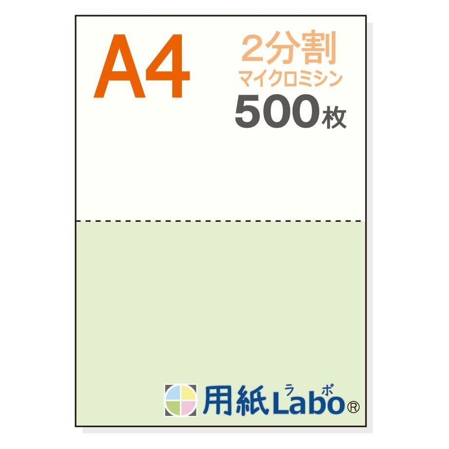 【2022最新】【用紙Labo】 A4 『白/緑』 2分割 55Kg (500枚) ミシン目入り用紙 マイクロミシン 用紙ラボ