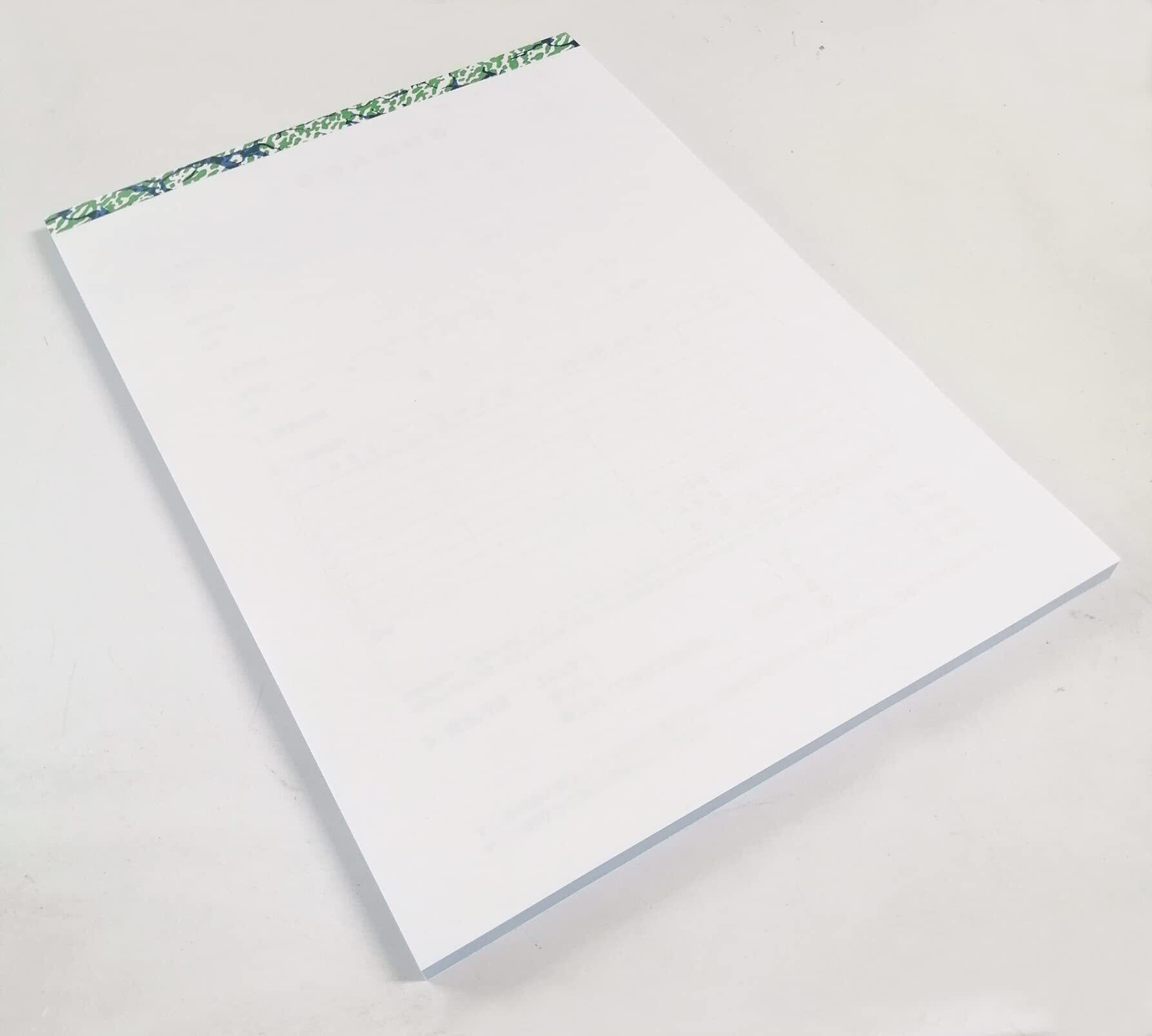 1・2枚目を冊子から引き離して書き込み出来ます。冊子のまま書き込む時は2枚目の下に厚紙をはさんで書き込んでください。下の紙への複写を防げます。厚紙同梱。
