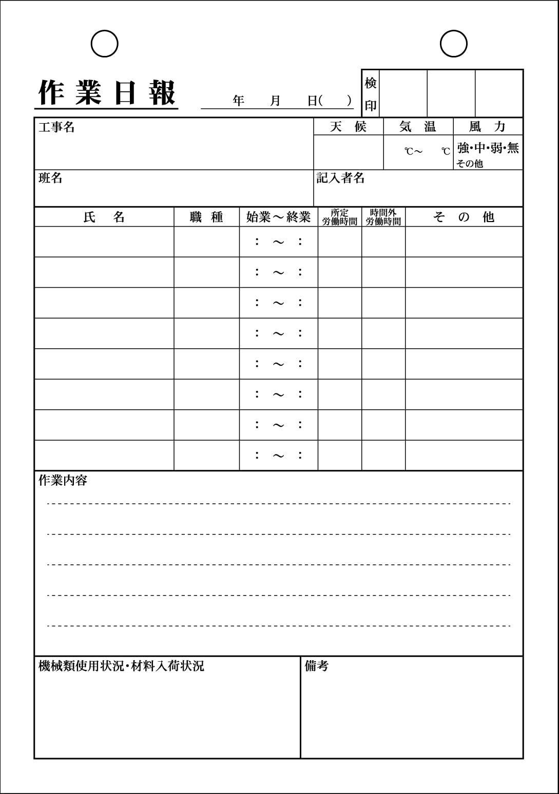 作業日報 50組5冊 2枚複写(ノーカーボン) B6サイズ 2穴 労働時間管理