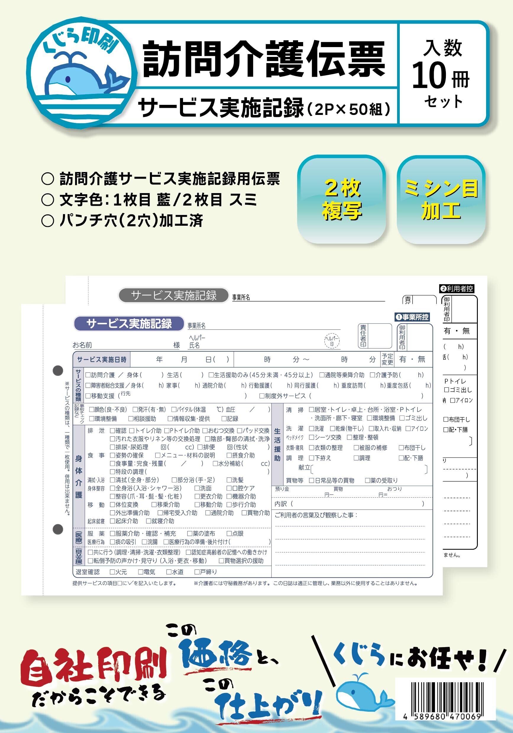【特価商品】訪問介護伝票 A5 2枚複写 50組×10冊 訪問介護サービス実施記録 くじら印刷