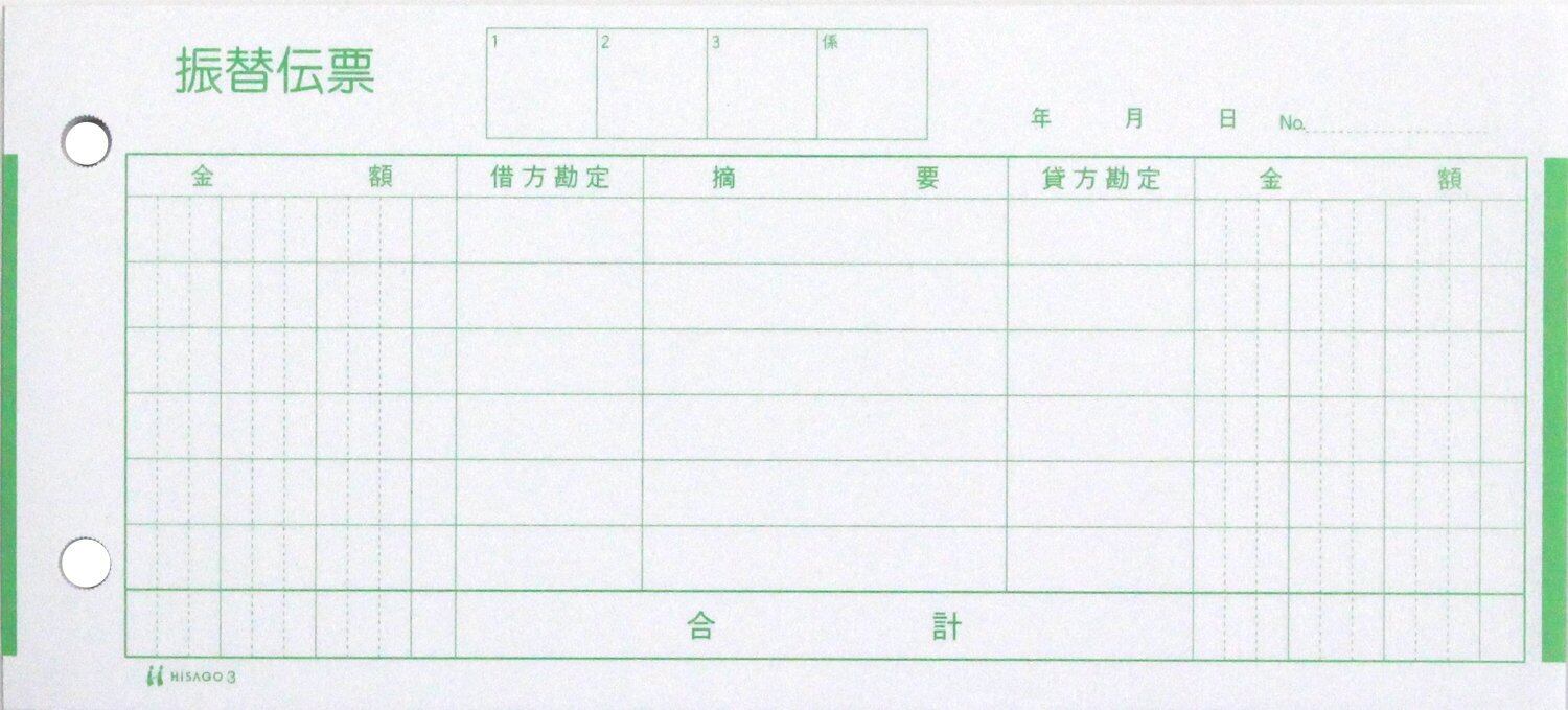 ヒサゴ セット伝票(製本していないタイプ) 振替伝票 185×84mm 300枚 3