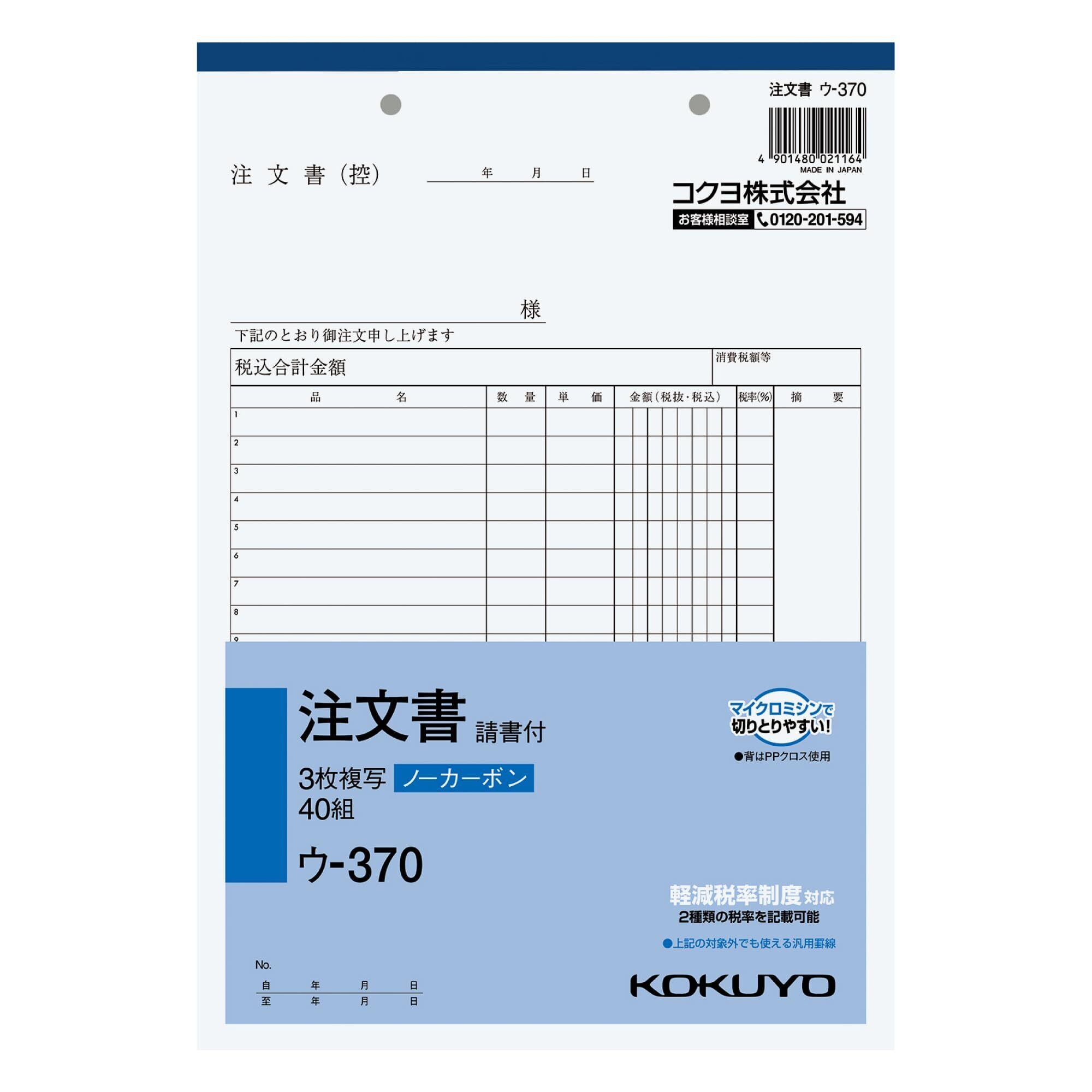 コクヨ 3枚注文書 請書付き B5 タテ 19行 40組 ウ-370