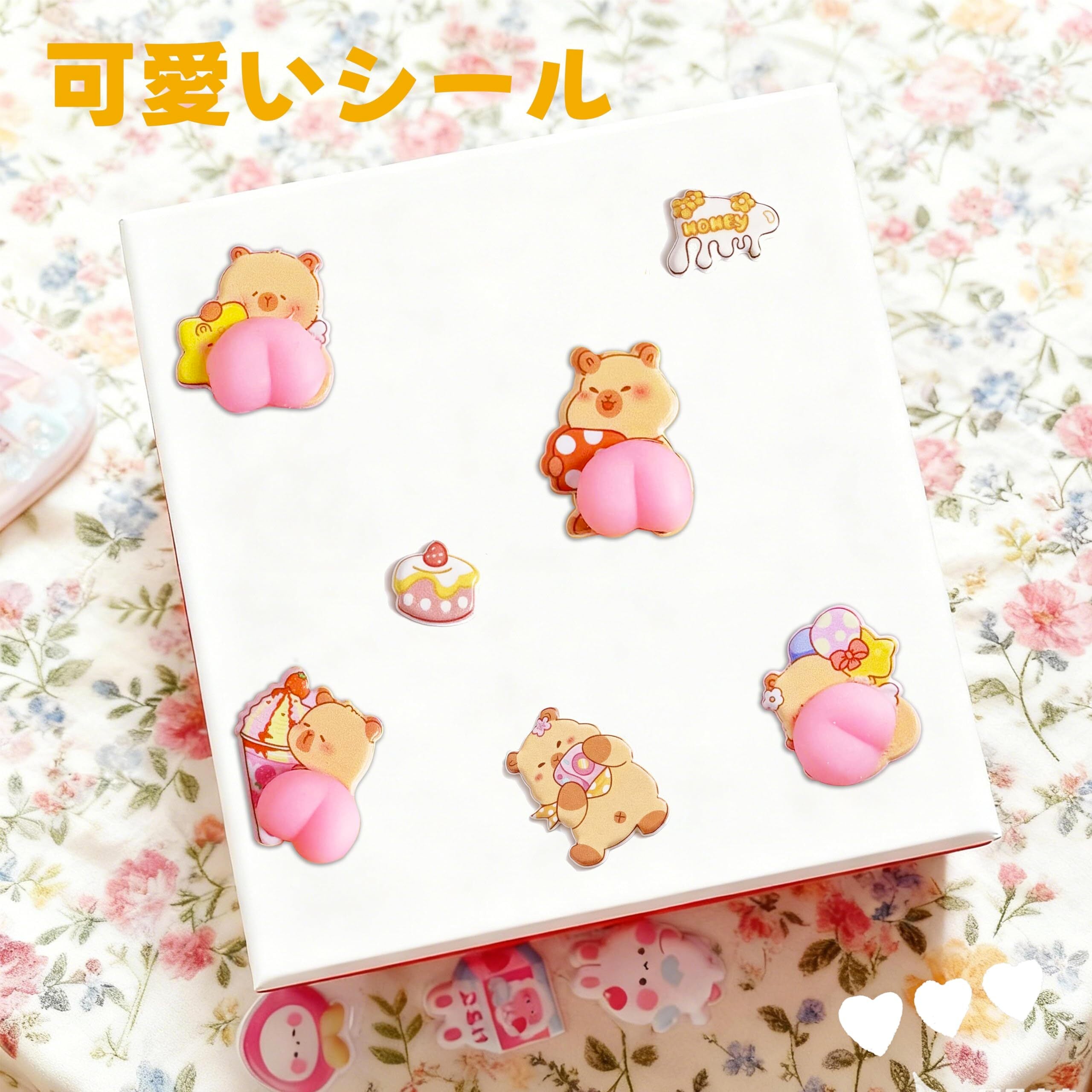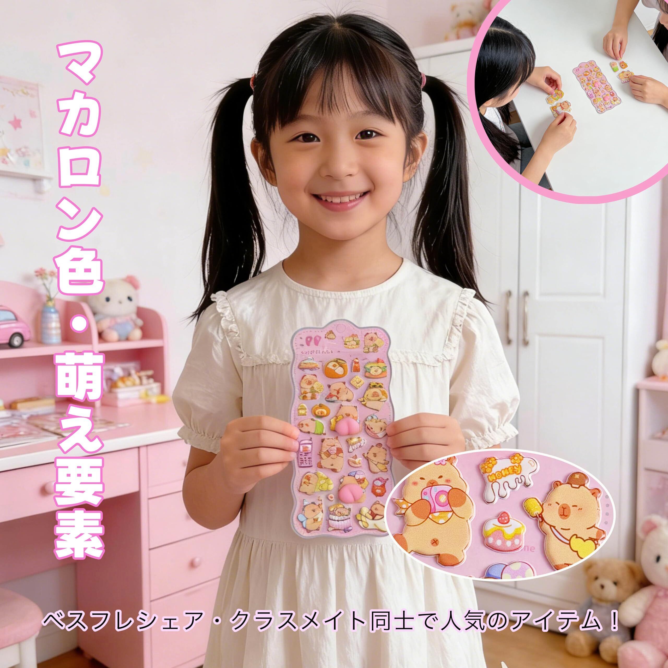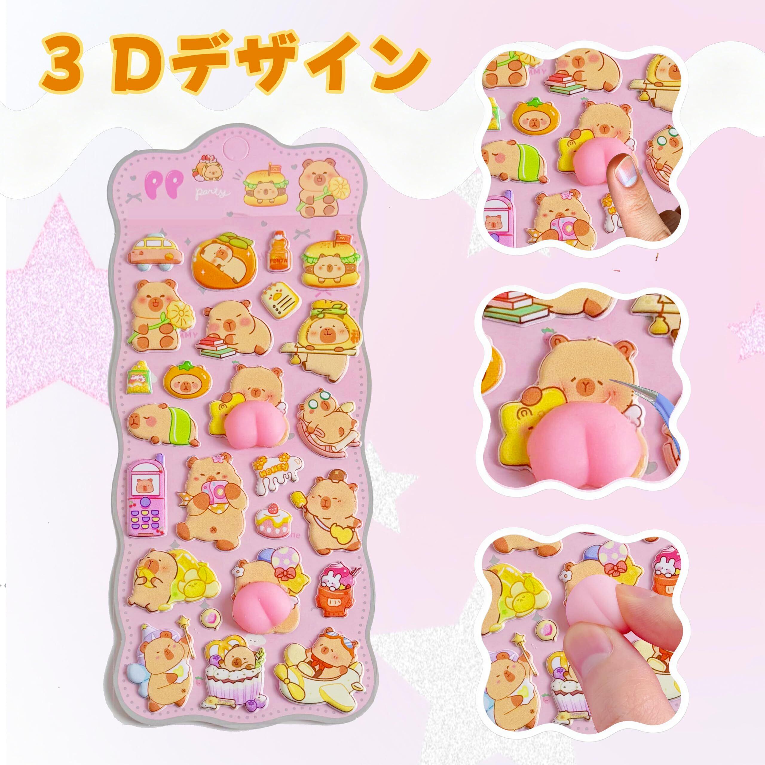 のほほん カピバラ!かわいい 立体3Dシール ぷにぷに 動物デザイン - 2枚セット 手帳/スマホデコレーション用 ご褒美シール