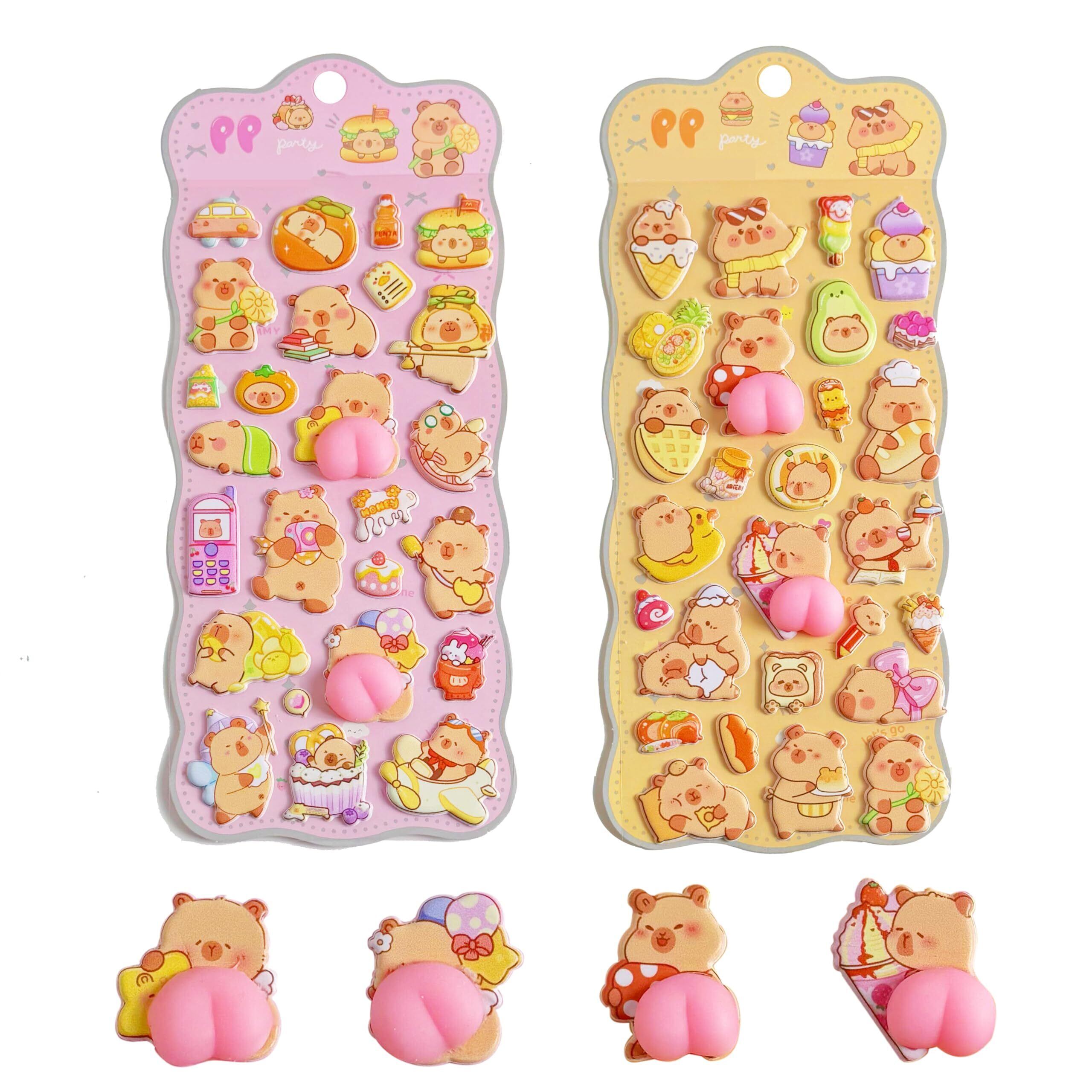 【人気商品】のほほん カピバラ!かわいい 立体3Dシール ぷにぷに 動物デザイン - 2枚セット 手帳/スマホデコレーション用 ご褒美シール
