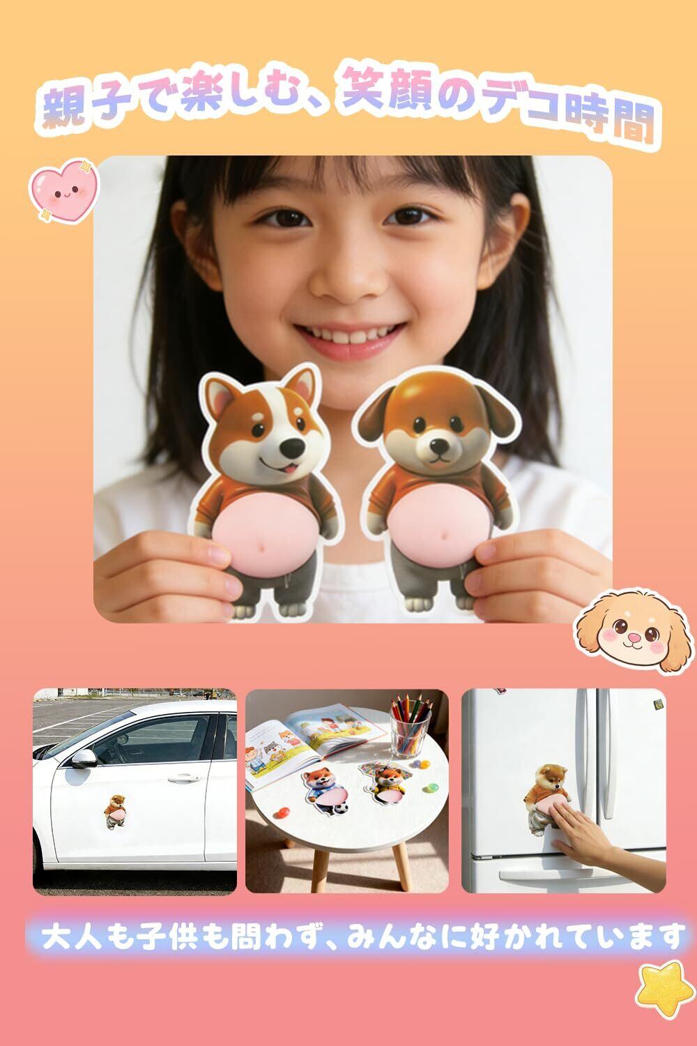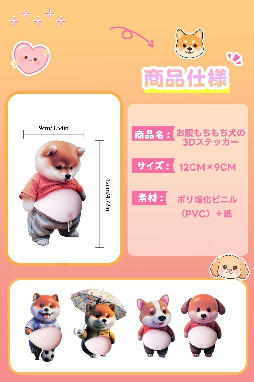 【3D立体デザイン】シールは3D立体デザインで作られており、リアルな3D立体感を楽しむことができます。どの角度から見ても可愛らしい柴犬のお腹がぷくぷくと膨らんで見え、デコレーションに最適です。