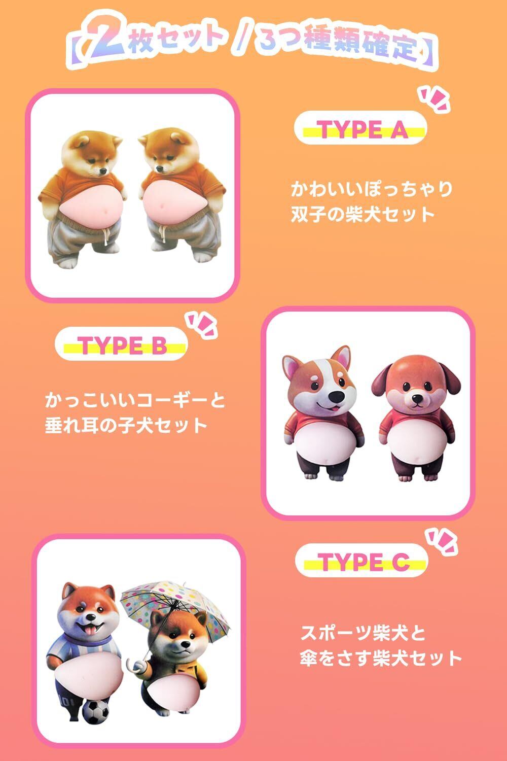 お腹ぷにぷにシール 柴犬 マシュマロシール 3D 立体 もっちり 柔らかいお腹 ぷくぷく かわいい 手帳用 日記帳用 車用 飾り用 デコレーション(2枚入) (SBIN A)