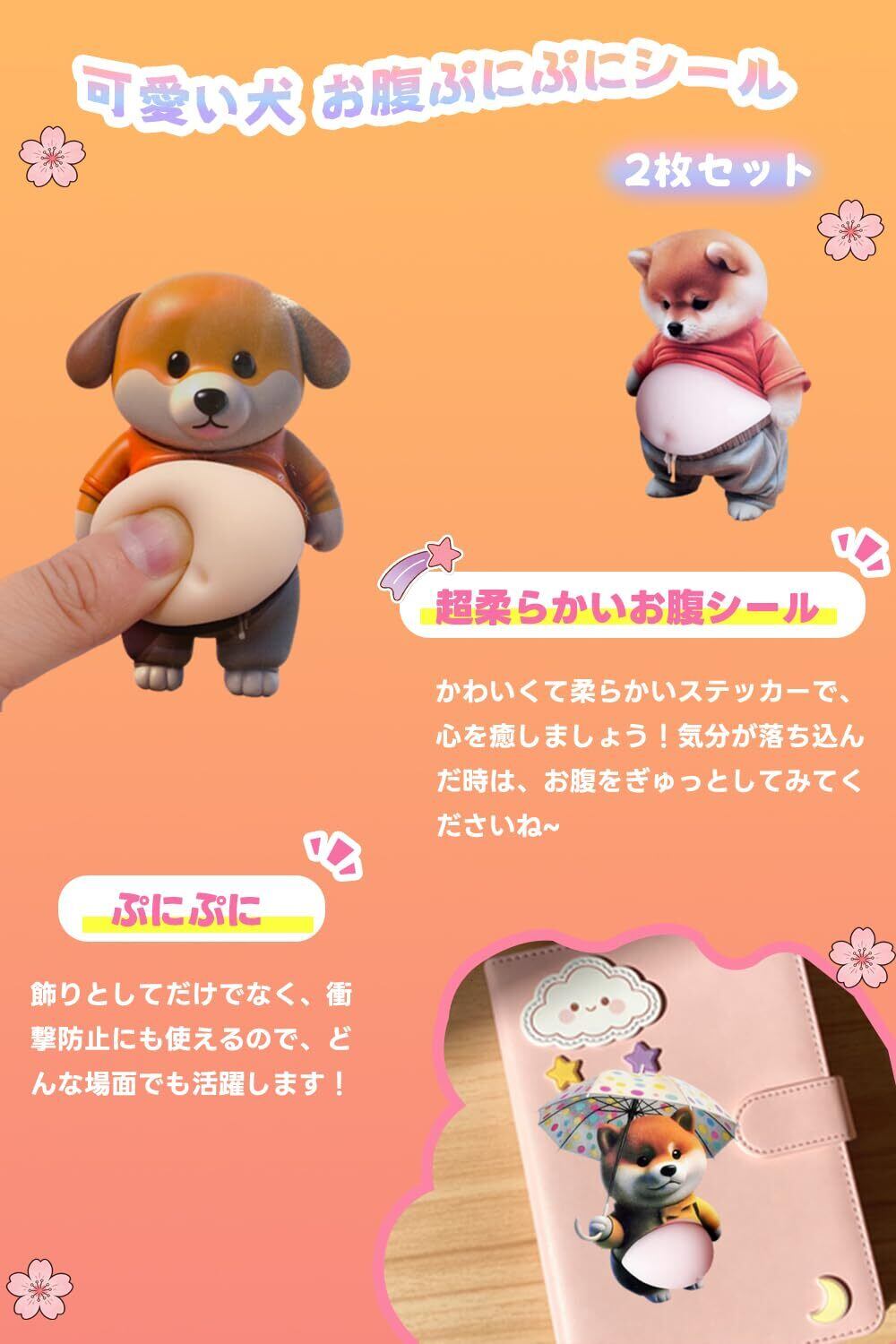 【特価商品】お腹ぷにぷにシール 柴犬 マシュマロシール 3D 立体 もっちり 柔らかいお腹 ぷくぷく かわいい 手帳用 日記帳用 車用 飾り用 デコレーション(2枚入) (SBIN A)