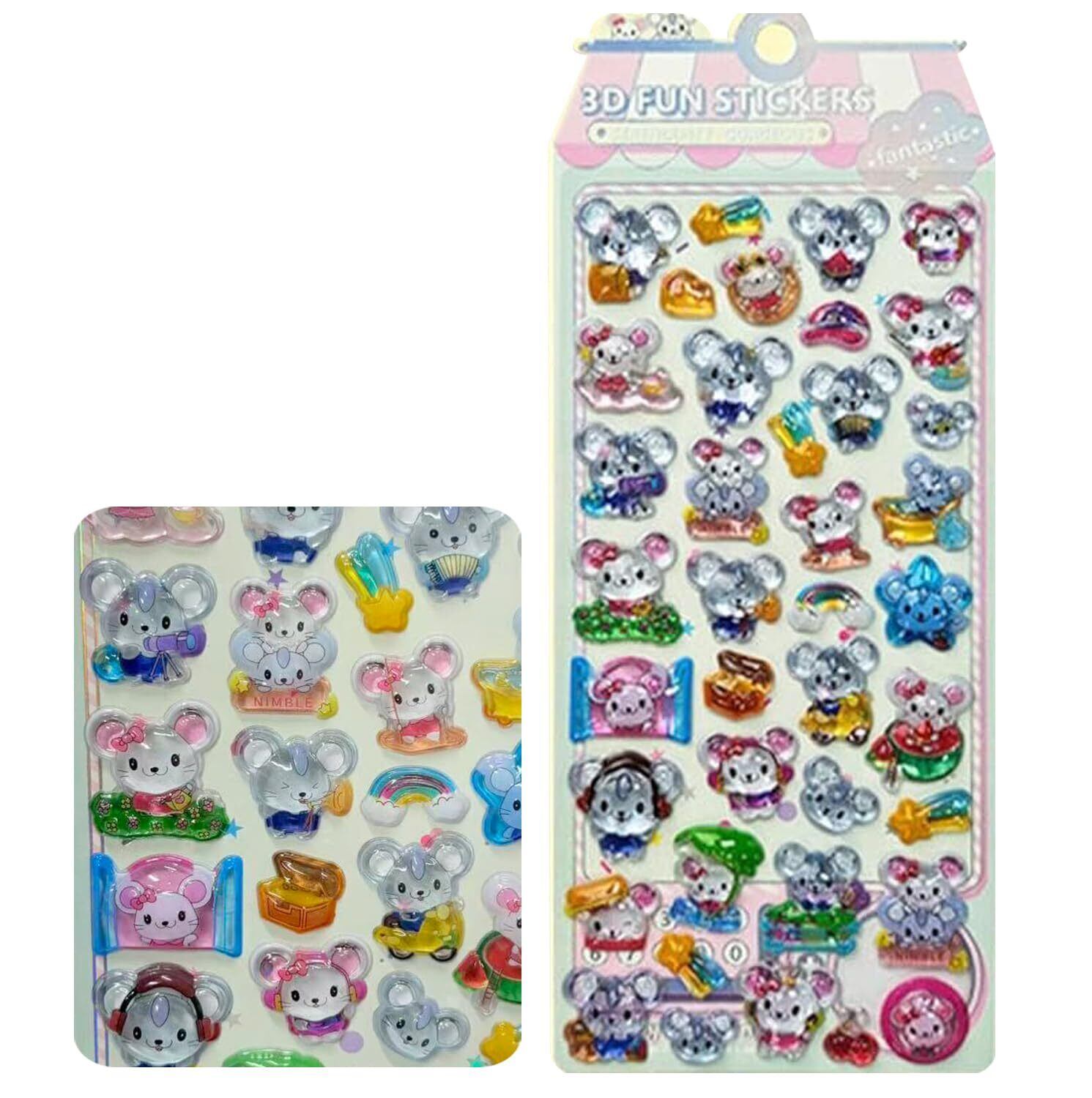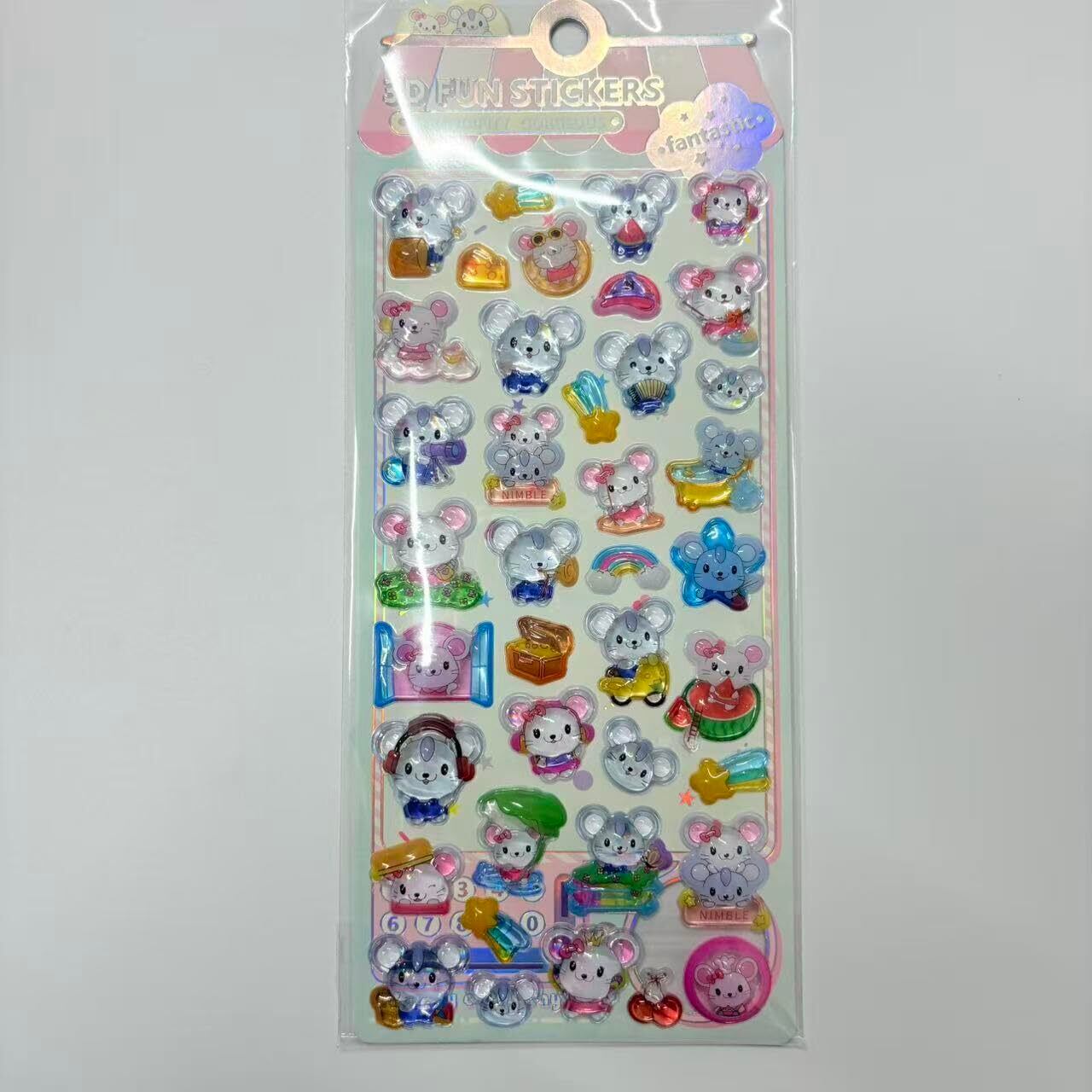 【硬いタイプ 1枚 ネズミ】ぷっくり 3D立体シール 中実体 クリスタルジェルシール ジェルステッカー シール 可愛い 立体 キラキラ 文房具 手帳 ぷくぷく装飾用 手作りノートパソコン 日記の文房具ステッカー 装飾アイテム 飾り付けに最適 (1枚 ネズミ)