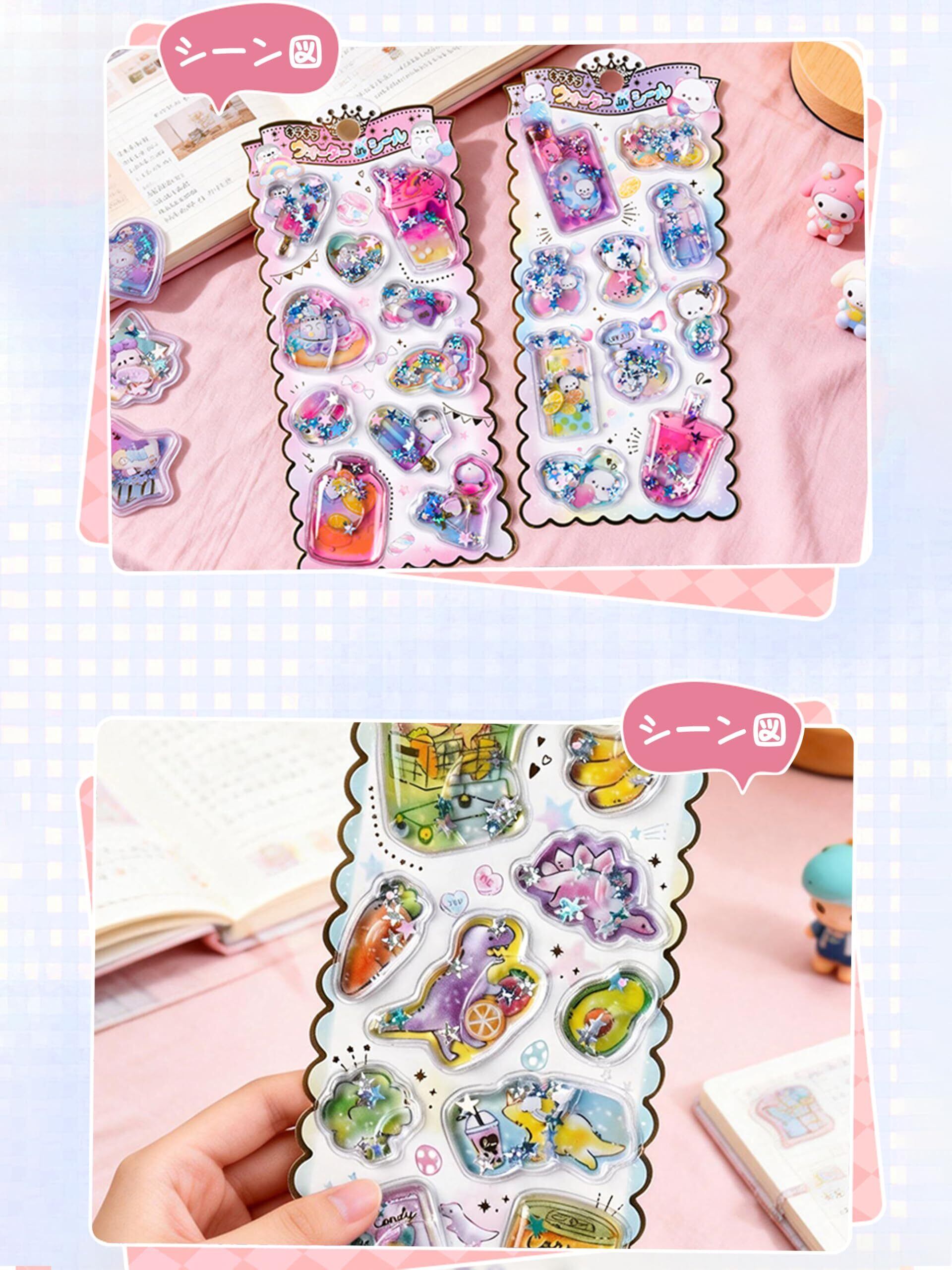 【可愛く個性的なギフト用ステッカー】可愛らしいデザインが豊富な水入りシールは、誕生日プレゼントや友達への贈り物として最適。この創意あふれるステッカーで、手帳装飾に素敵なサプライズを届けよう。