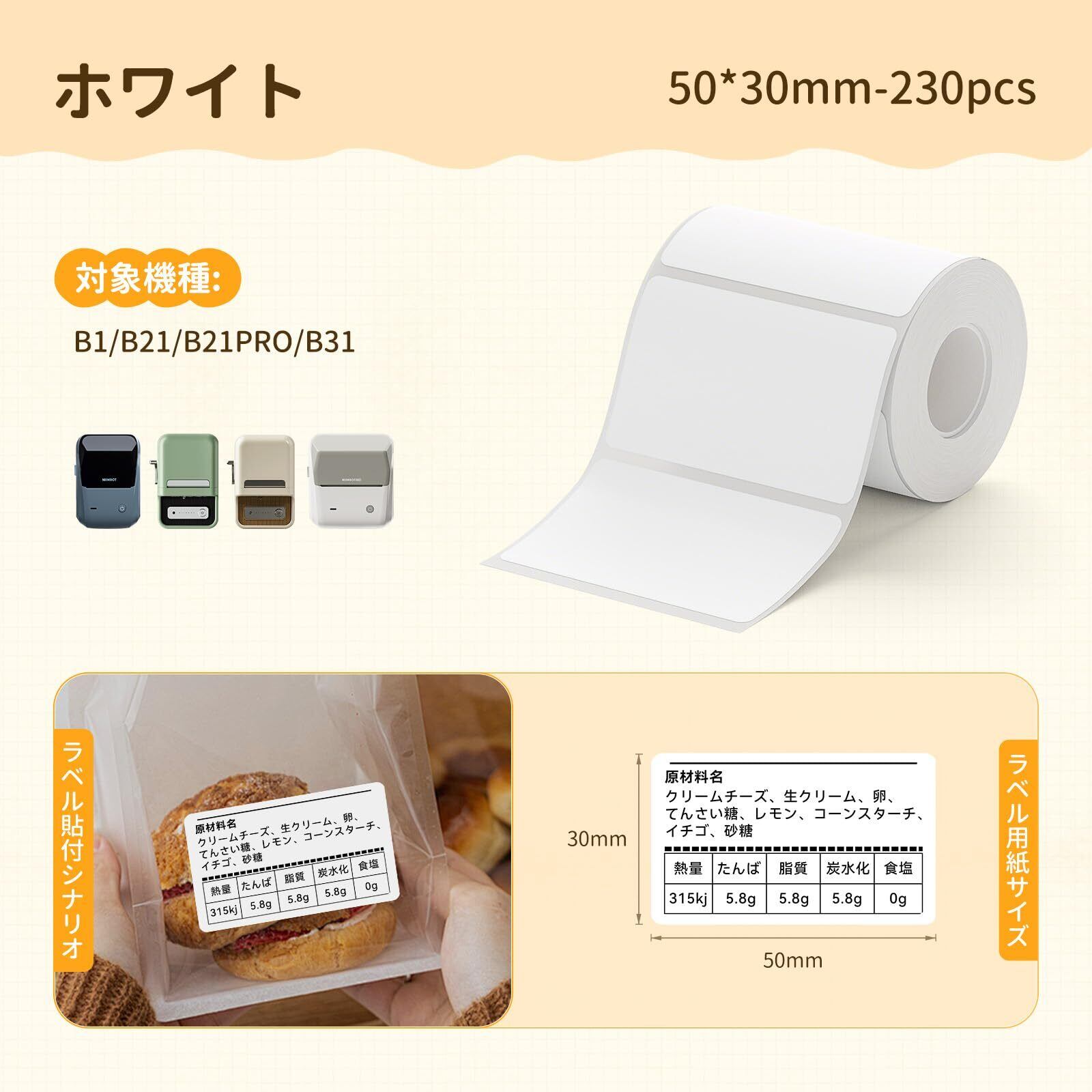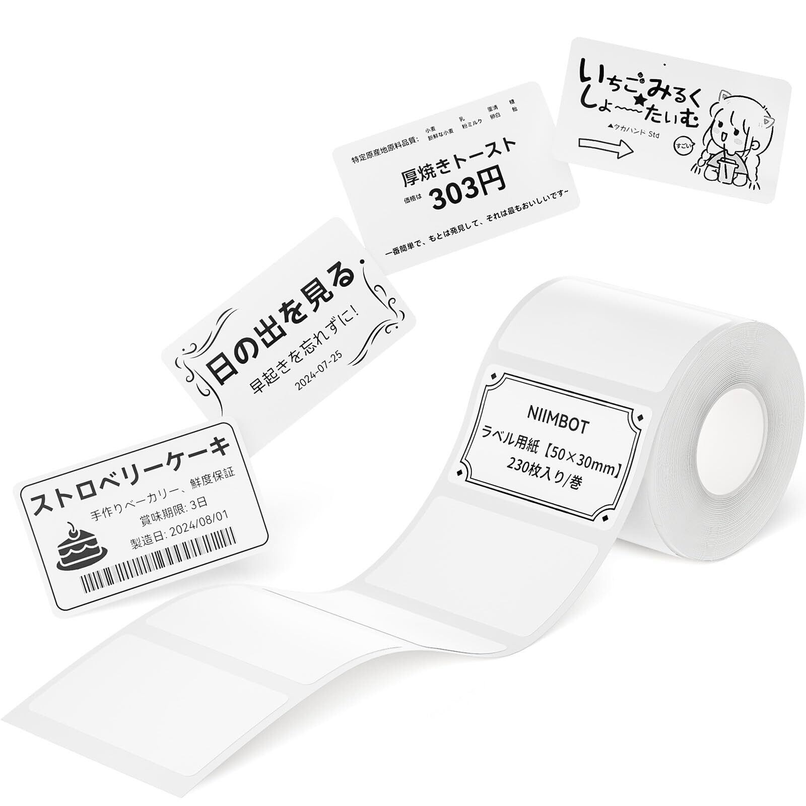 NIIMBOT ラベルメーカー本物のテープ1.97 x 1.18インチ(50 x 30 mm)プリンターステッカーペーパーB1/B1Pro/B2/B2Pro/B21/B21Pro/B31ラベルメーカーの自己粘着 230枚入り/巻 (ブラックテキスト/白)
