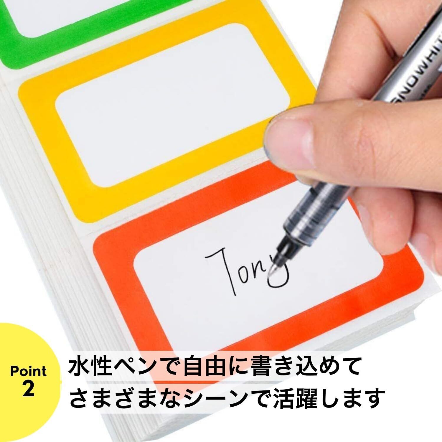 【自由に書きこめて使い方色々】お手持ちのペンで書き込める手書き用ラベル。見やすいカラー枠のみのシンプルなデザインのため、場所や用途を選ばず自由に使えます。