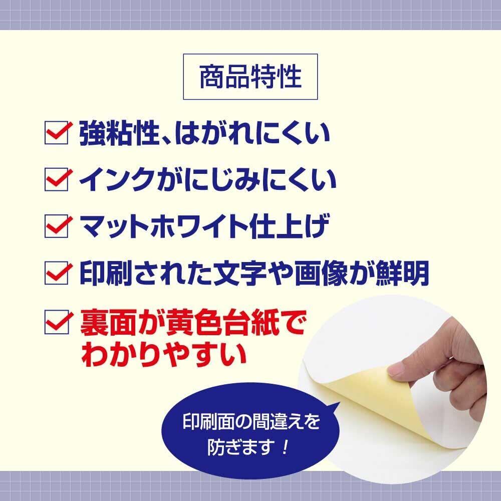 【きれいにはがせる強粘着素材】 マット紙の高品質素材で、総厚み0.17mmの耐久性。封筒や発泡スチロールなど、さまざまな表面に貼り付け後もきれいにはがせます。※効果は条件により異なりますので、まずはお試しください。