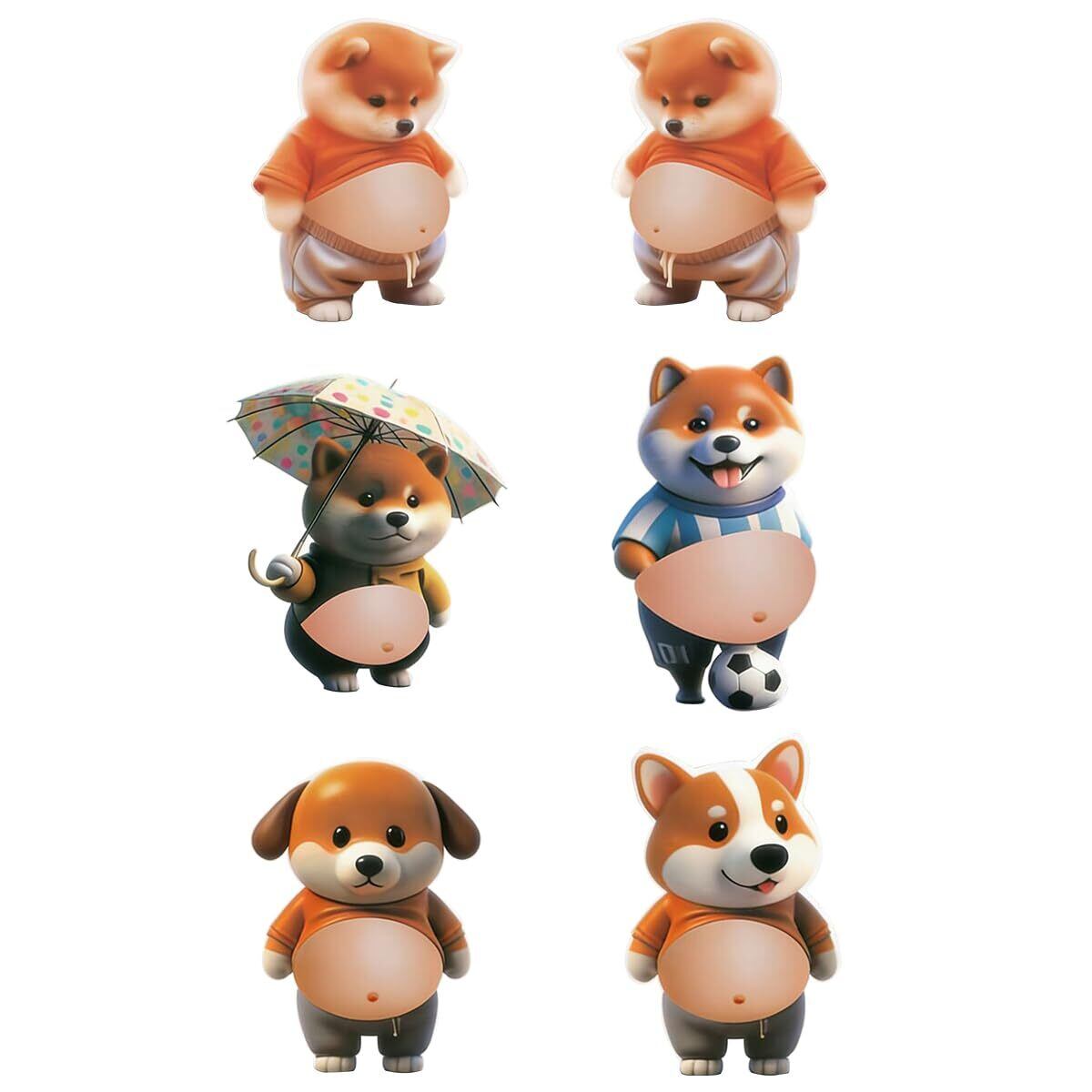 3D 犬 お腹 シール 柔らかいお腹 めずらしくておもしろい かわいい 3D もっちりスクイーズ ステッカー シー ル帳 デコレーション 携帯電話飾り用 手帳用 日記帳用 (6個入りコンボパック)