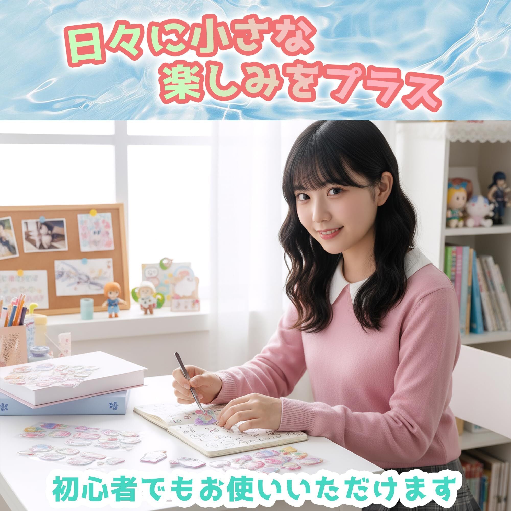 【高品質樹脂で剥がしもキレイ】従来の紙製シールではがした時に発生するべたつきや破れの心配はもう不要です。本品の高品質ソフト樹脂ウォーターシールは適度な粘着性を実現し、シールの特性を活かして様々な表面にしっかり密着する一方、必要時にきれいにはがせる水入りシールです。繰り返し貼り直してレイアウトを自由調整できるウォーター シールとして、創造性を存分に発揮できます。