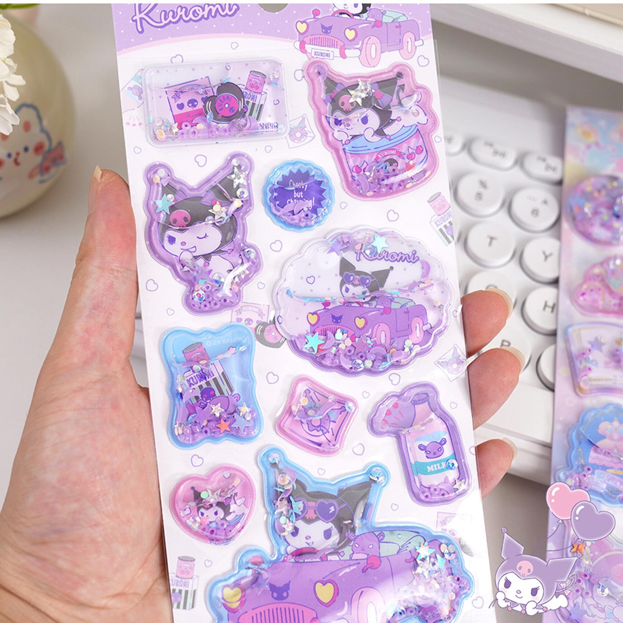 【水シール|3D 立体柄が精巧】本製品の水シールは 3D 立体デザインに、きらきらしたカラフルなグリッターを加えて制作されています。精巧な印刷技術で豊かな色彩と立体的な柄を再現し、手帳やノートに貼ると、ページが瞬時に生き生きとした雰囲気と層感に満たされます。
