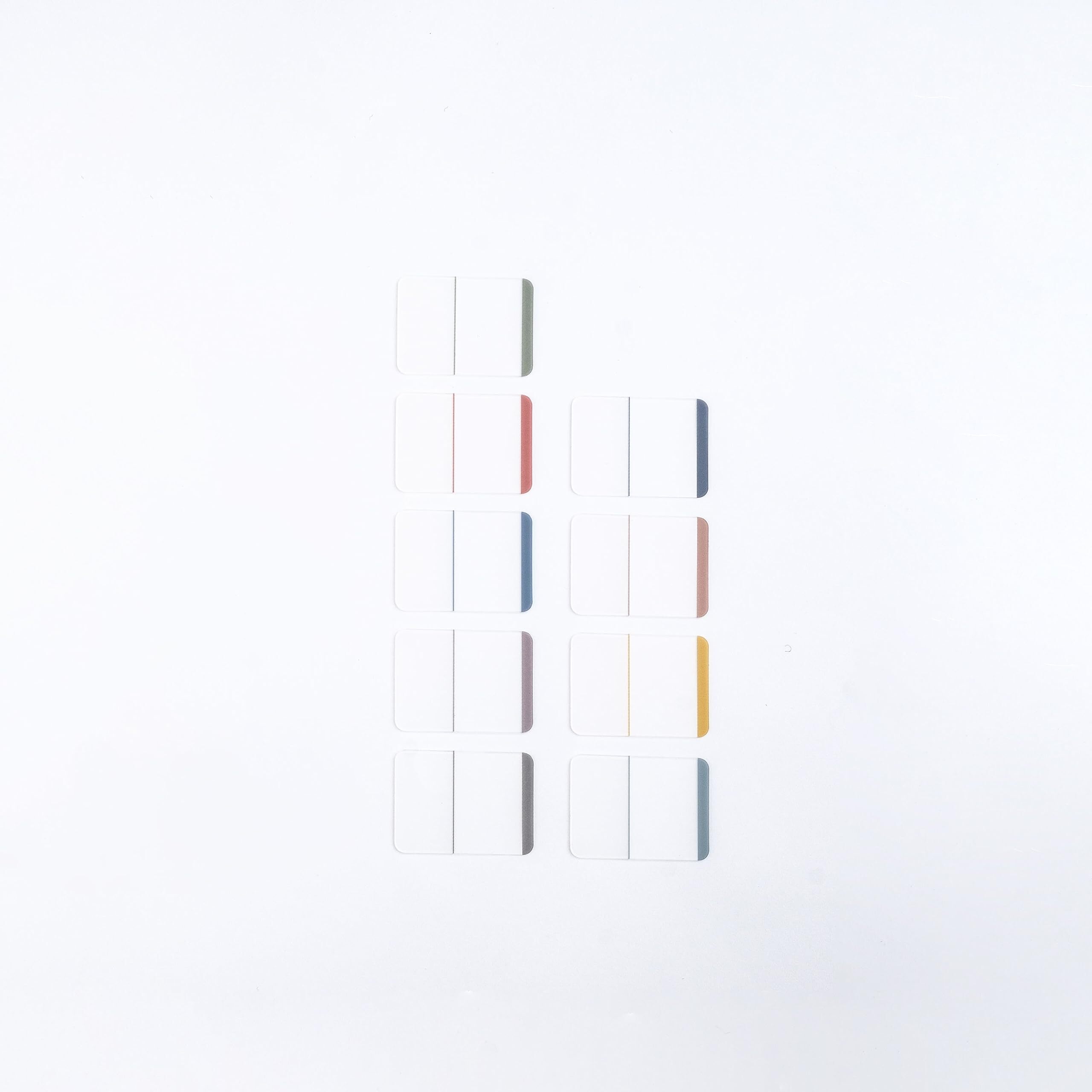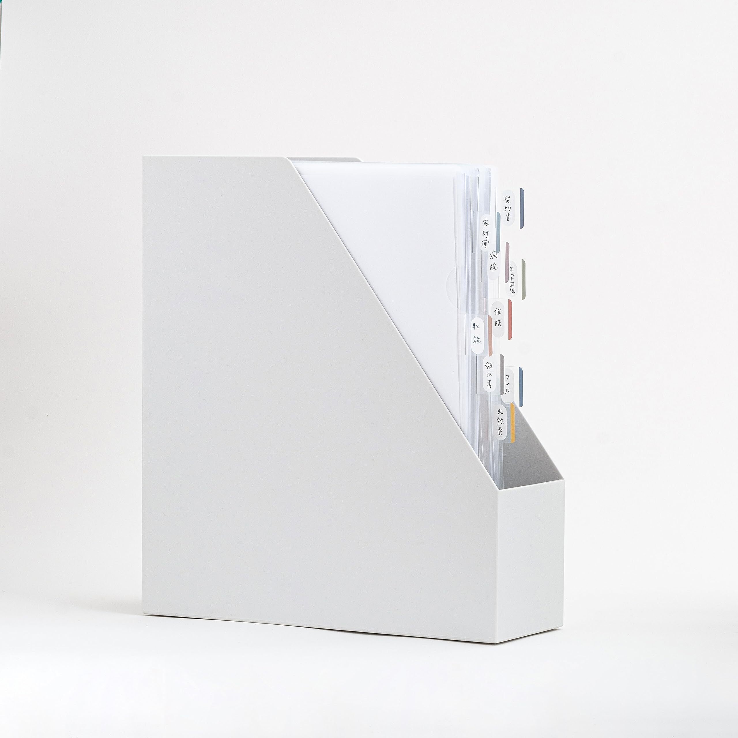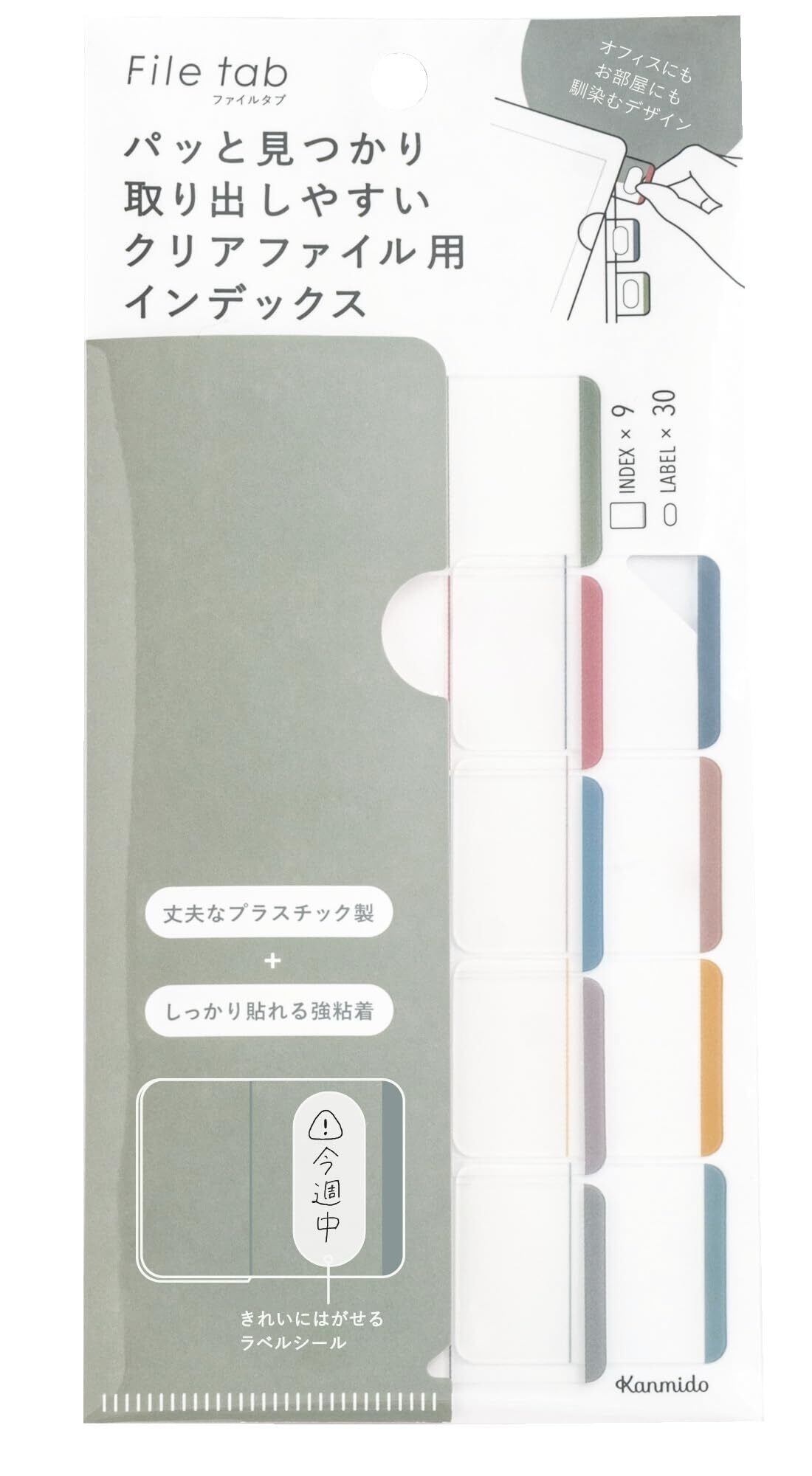 『ファイルタブ』は、しっかりとした厚みと粘着力を持つ、プラスチック製のクリアファイル用インデックスです。「見つけやすい」「取り出しやすい」「やぶれずに使える」というインデックスとしての嬉しい機能と、オフィスにもお部屋にも馴染むデザインで、クリアファイルをもっと便利に使うことができます。