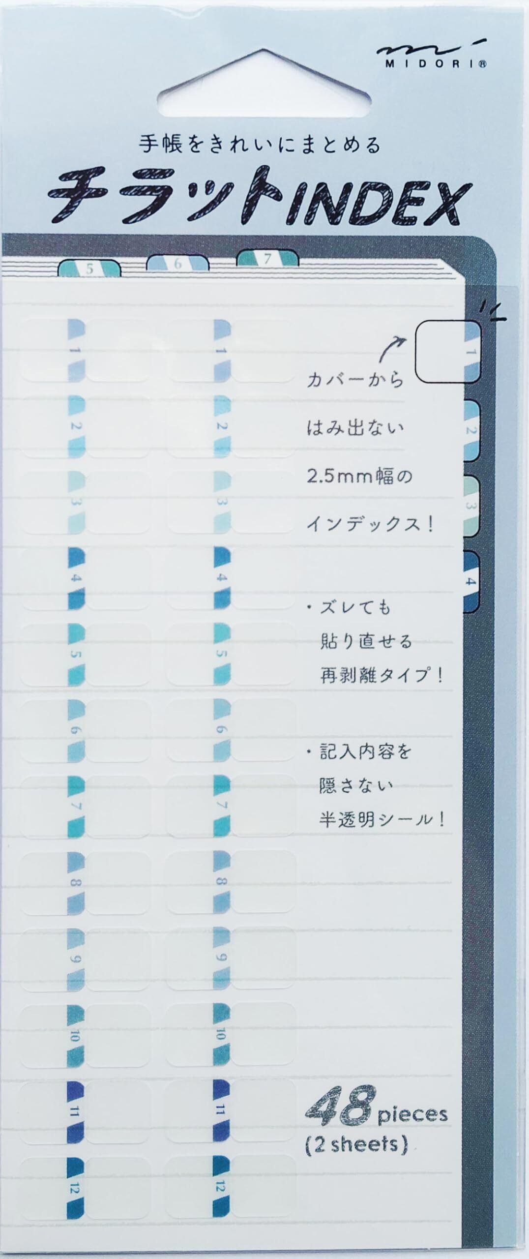 インデックスシール 月 手帳 チラット インデックス 【S 数字 グレー】【S 数字 ブルー】 セット