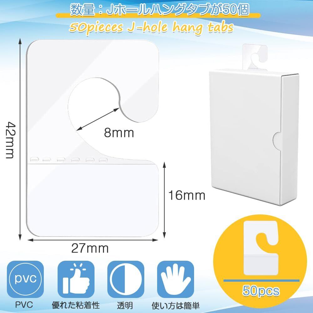 透明ハンギングタブ Jホールハングタブが 50個セット 粘着式 吊り下げ粘着タブ フック穴 小型軽量商品 小売店用 吊り下げディスプレイ オフィス/家庭/店舗 様々な用途 42mm×27mm